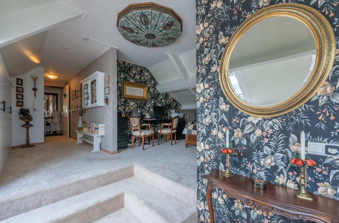 Op de verdieping is ter hoogte van de linkervleugel een compleet appartement aanwezig met een woonkamer, een slaapgedeelte, een keuken en een badkamer. Tevens toegang tot een fijn overdekt balkon.