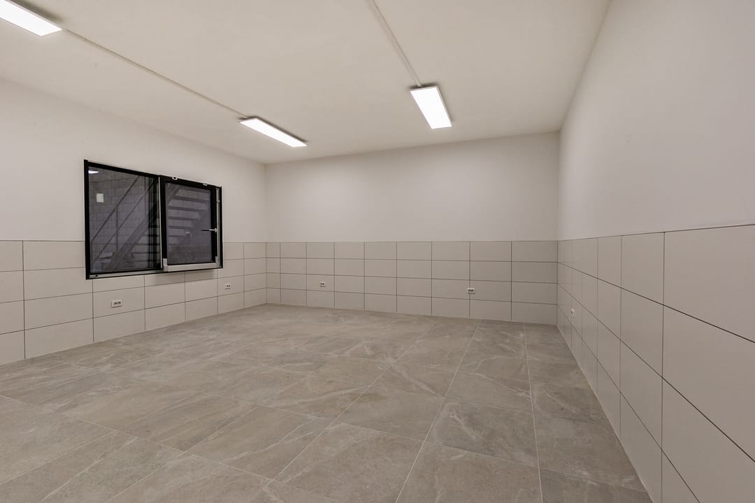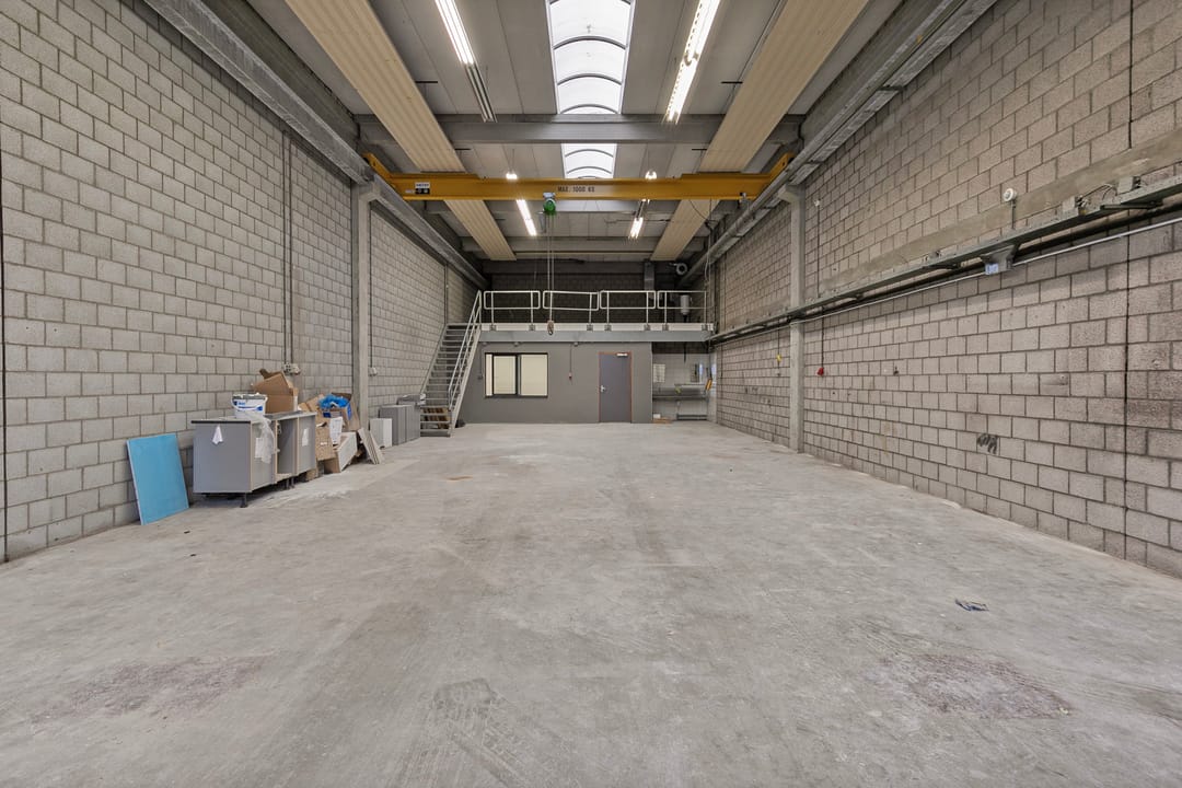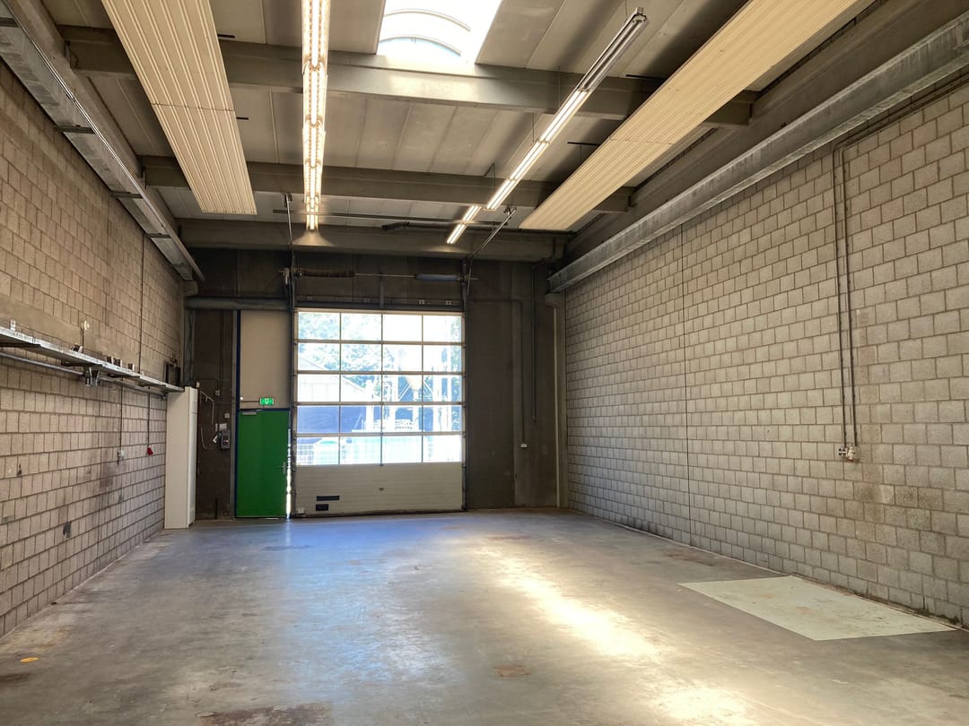 - Lichtstraten, overheaddeuren, krachtstroom, betonvloer, toilet en pantry