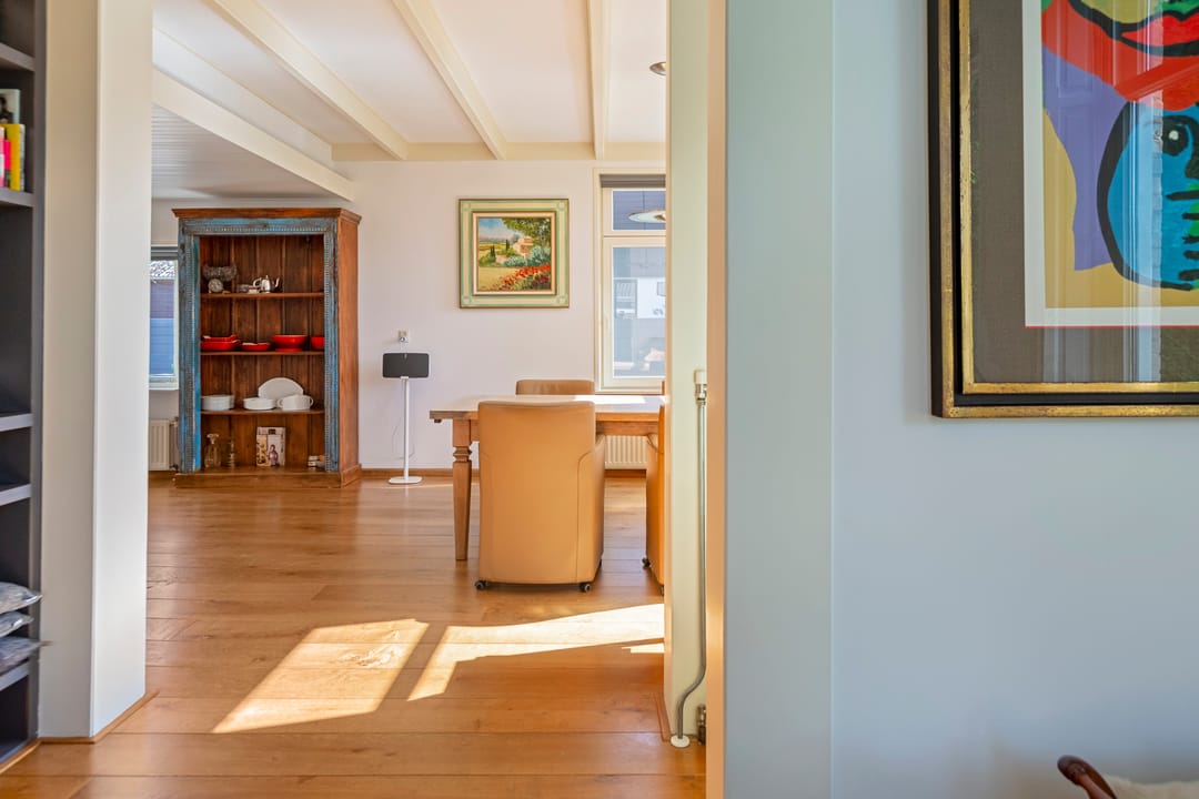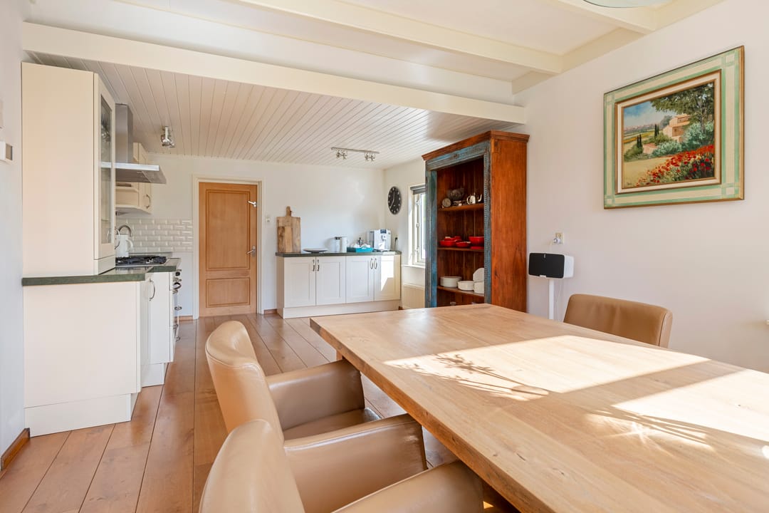 Op de begane grond bevinden zich verder een ruime eetkamer, grenzend aan de keuken, een extra kamer die flexibel te gebruiken is, bijvoorbeeld als kantoor of hobbyruimte, de badkamer met inloopdouche en dubbele wastafel, en de wasruimte. De wasruimte biedt toegang tot de berging. Het woonhuis is direct verbonden met een grote ruimte, waardoor het bouwen van een generatiewoning tot de mogelijkheden behoort. Aangrenzend aan de woning bevindt zich de kleinere loods. Aan de kleinere loods grenst vervolgens de grote loods, die met een oppervlakte van ca. 208 m² genoeg mogelijkheden en ruimte biedt.