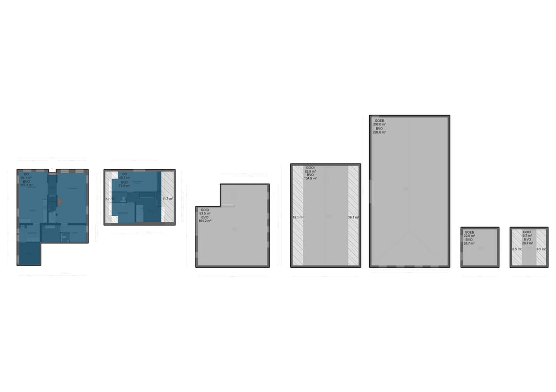 Grotere loods: ca. 208 m², aansluitend aan de kleinere loods.