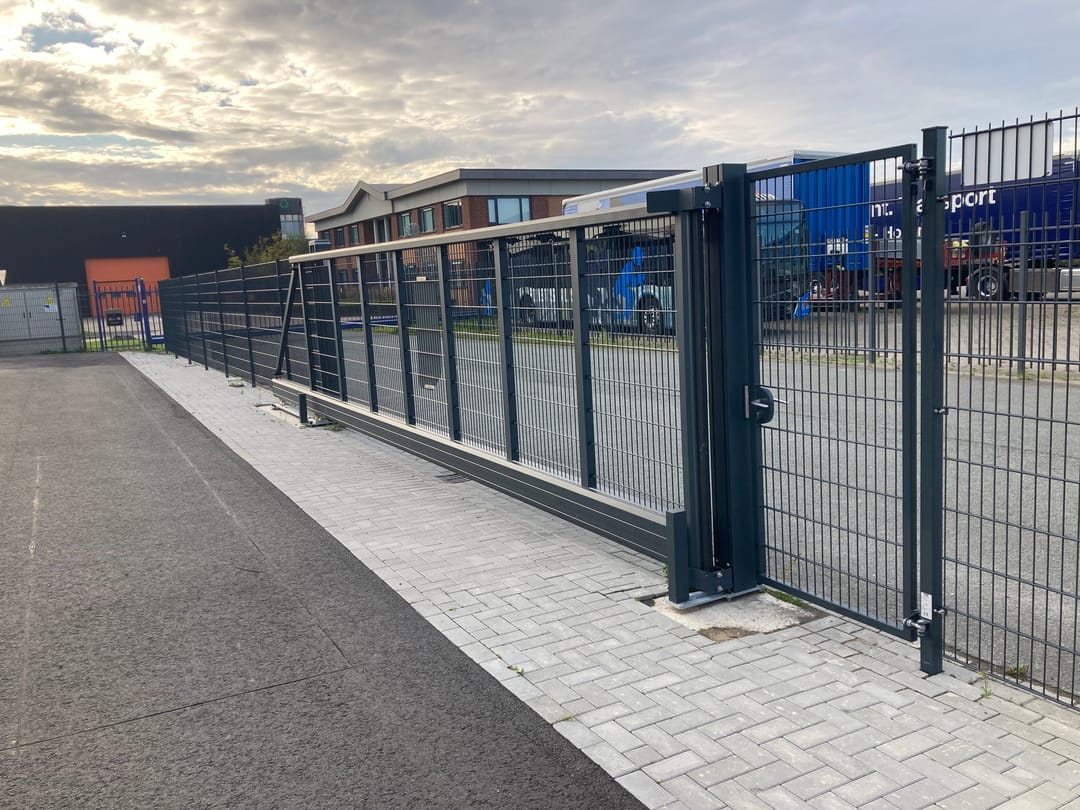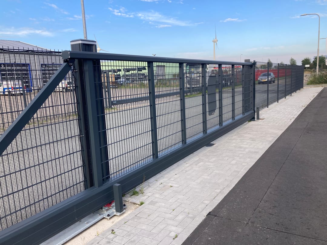 -elektronisch toegangshek (schuifhek) met daarnaast een loopdeur