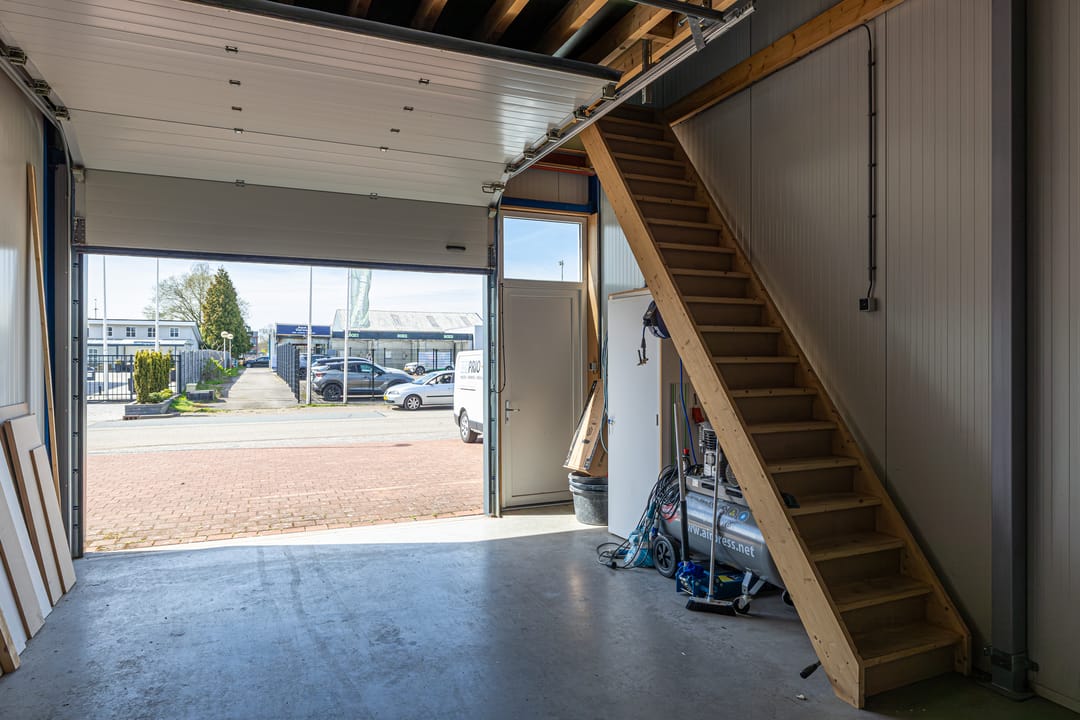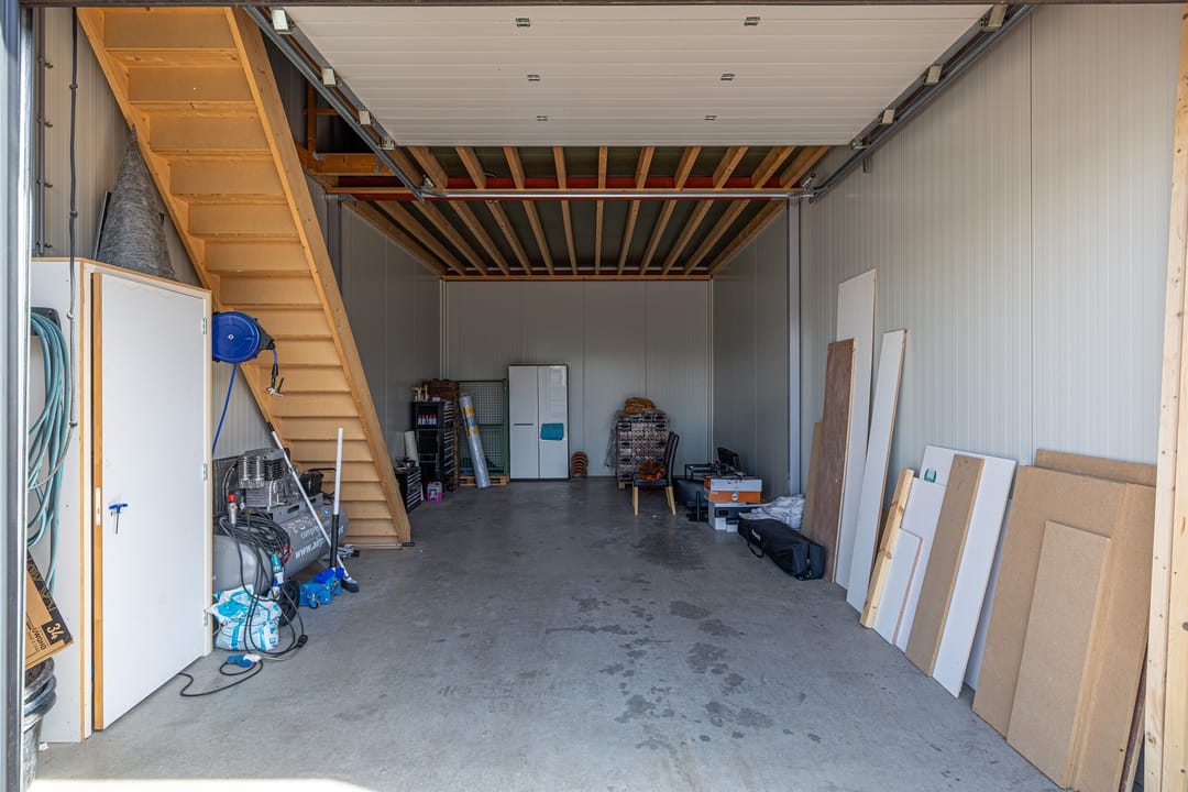 Het pand is gebouwd in 2020 en is keurig onderhouden. Het is bereikbaar via en grote overheaddeur incl. loopdeur van 355cm x 300cm. Er is een eigen meterkast met krachtstroom en de aansluiting voor het toilet is voorbereid. De verdieping is bereikbaar via een vaste trap.