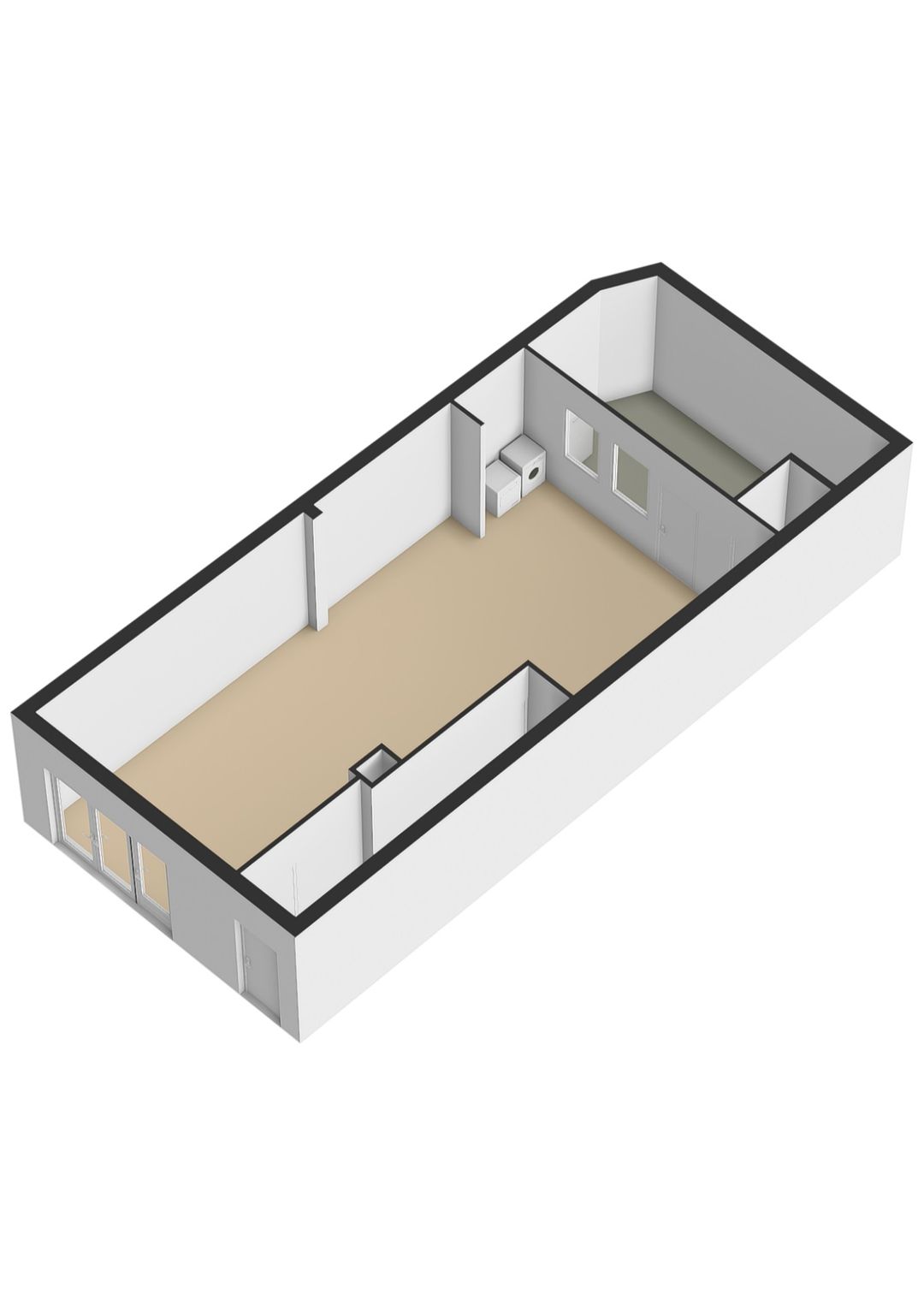 - Betonvloer, toilet en pantry
