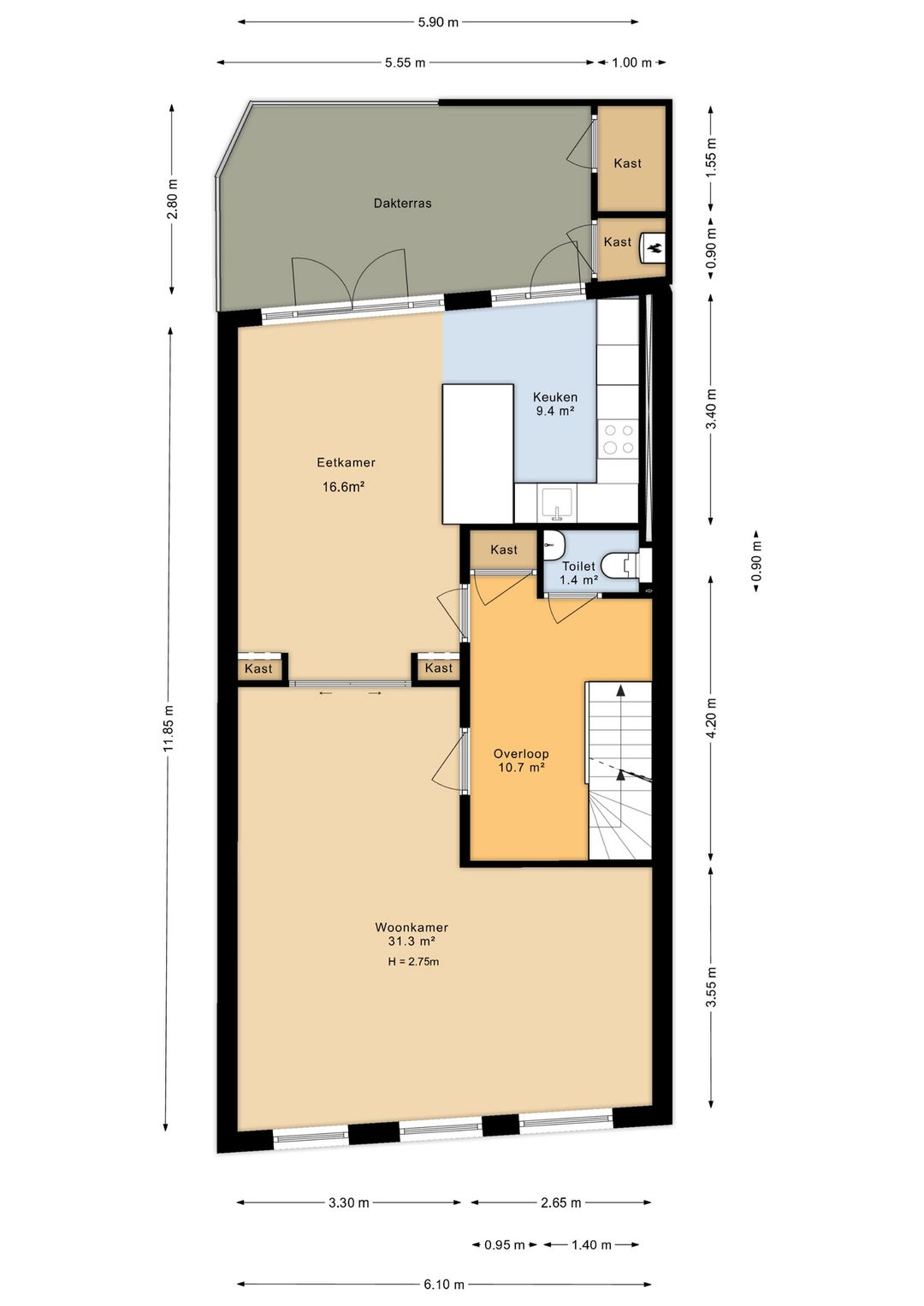 - Ca. 127 m² zelfstandige bovenwoning