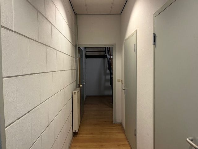 • Begane grond: circa 190 m² BVO, met entree via aparte deur, hal met toilet en trapopgang, bedrijfsruimte met overheaddeur en (vlucht)deur aan de achterzijde. De bedrijfsruimte is ca. ruim 4.2 meter hoog en voorzien van een grote elektrische overheaddeur.
