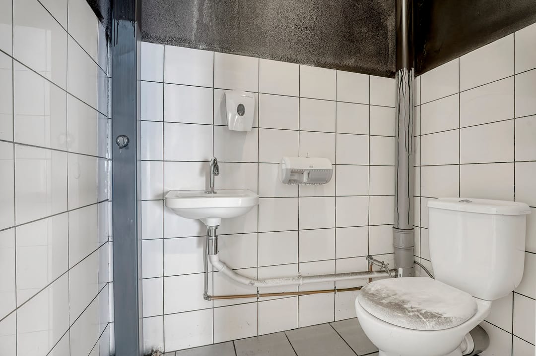 - Lichtstraten, overheaddeuren, betonvloer, heater en toilet