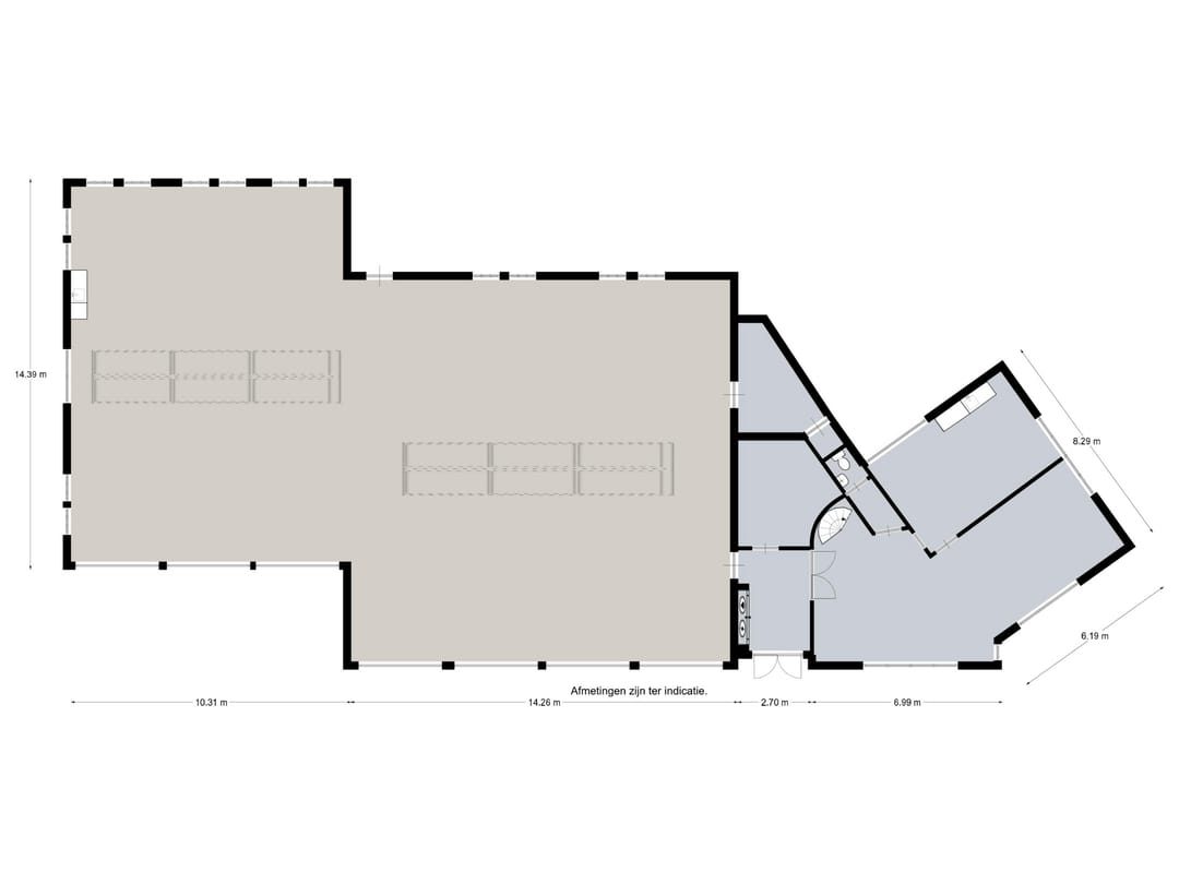 - Airconditioning, lichtstraten, overheaddeuren, krachtstroom, toilet en pantry
