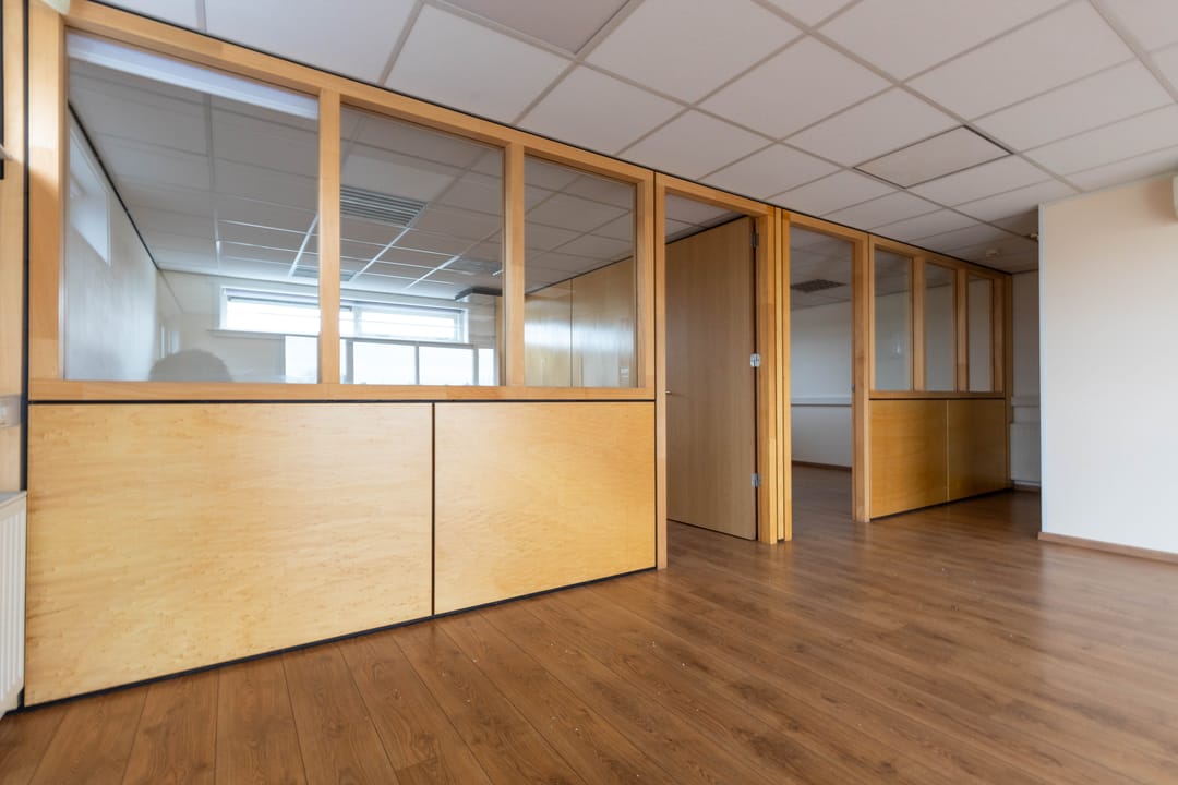 De hal biedt toegang tot een toiletruimte en de kantoorruimte, die is voorzien van een balkon, een praktische archiefruimte en twee vergaderruimten. Deze indeling maakt de verdieping ideaal voor zowel administratieve werkzaamheden als zakelijke bijeenkomsten.
