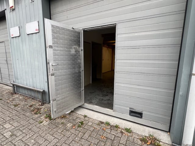 Het achterste deel beschikt over een overheaddeur (roldeur) voor laden en lossen. Hier is tevens een gedeeltelijke verdiepingsvloer aanwezig.