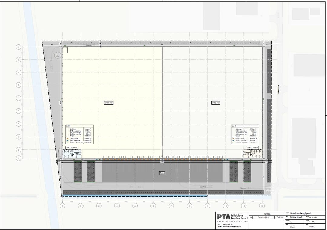• Vloerbelasting: 5.000 kg/m² warehouse, 700 kg/m² mezzanine en 400 kg/m² kantoor