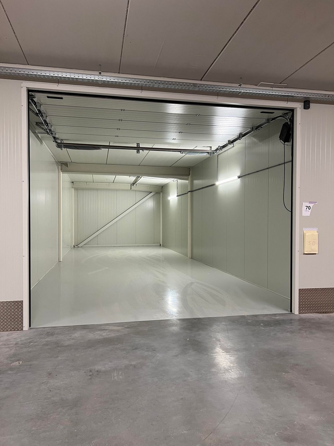 De garagebox (nummer 0.70) heeft een oppervlakte van 70m2 en is gesitueerd op de begane grond. De afmetingen zijn L 1395 cm B 500 cm H 350 cm. Let op: dit zijn buitenmaten. De garagebox heeft een doorrijhoogte van 325 cm. De garagebox is voorzien van een elektrische sectionaal deur van Hörmann (handzender en smartphone bediening), dubbel stopcontact, ledverlichting, rookmelder en tussenmeter voor de elektra. Gratis gebruik van de business lounge. Eigen huisnummer en brievenbus voor KVK-inschrijving. 24/7 beveiligde toegang.