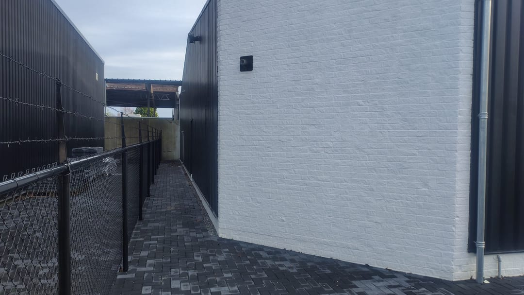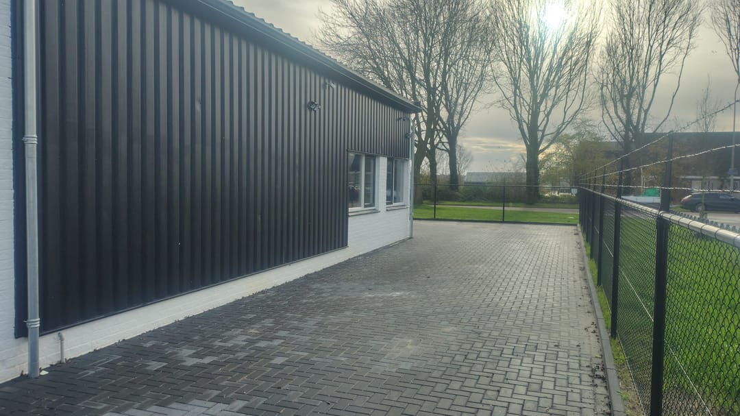- Buitenterrein volledig bestraat en afsluitbaar middels hekwerk