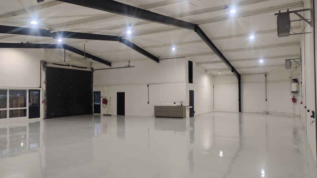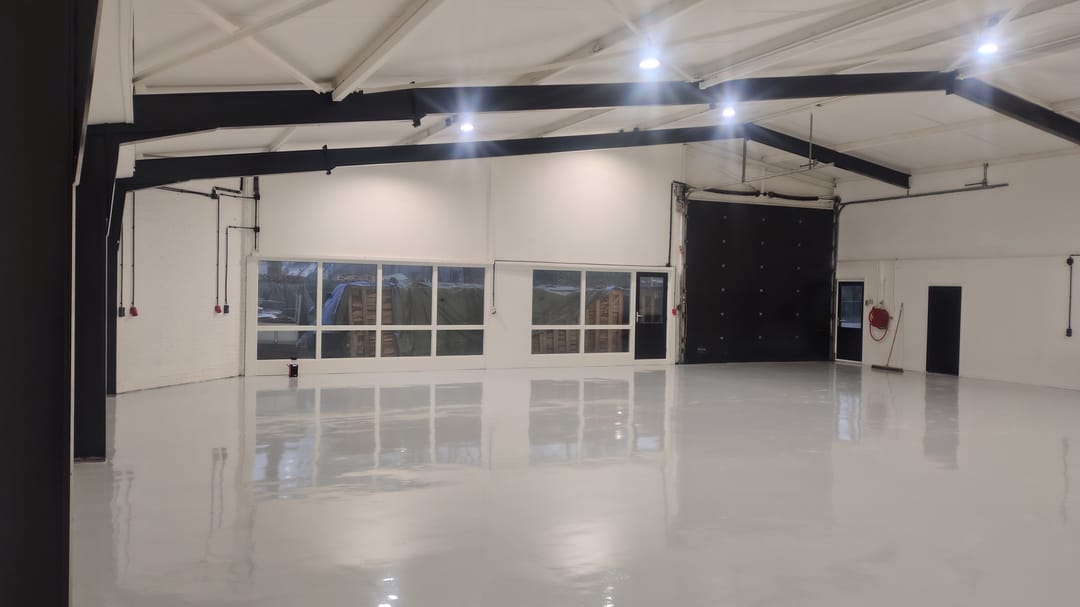 - Overheaddeuren, krachtstroom, betonvloer, heater en toilet