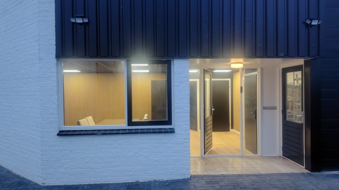 Entree met toilet en meterkast, 2 kantoren en een tussenruimte met een pantry. Loods is voorzien van een keuken met vaatwasser en koelkast. In de loods is een separaat toilet.
