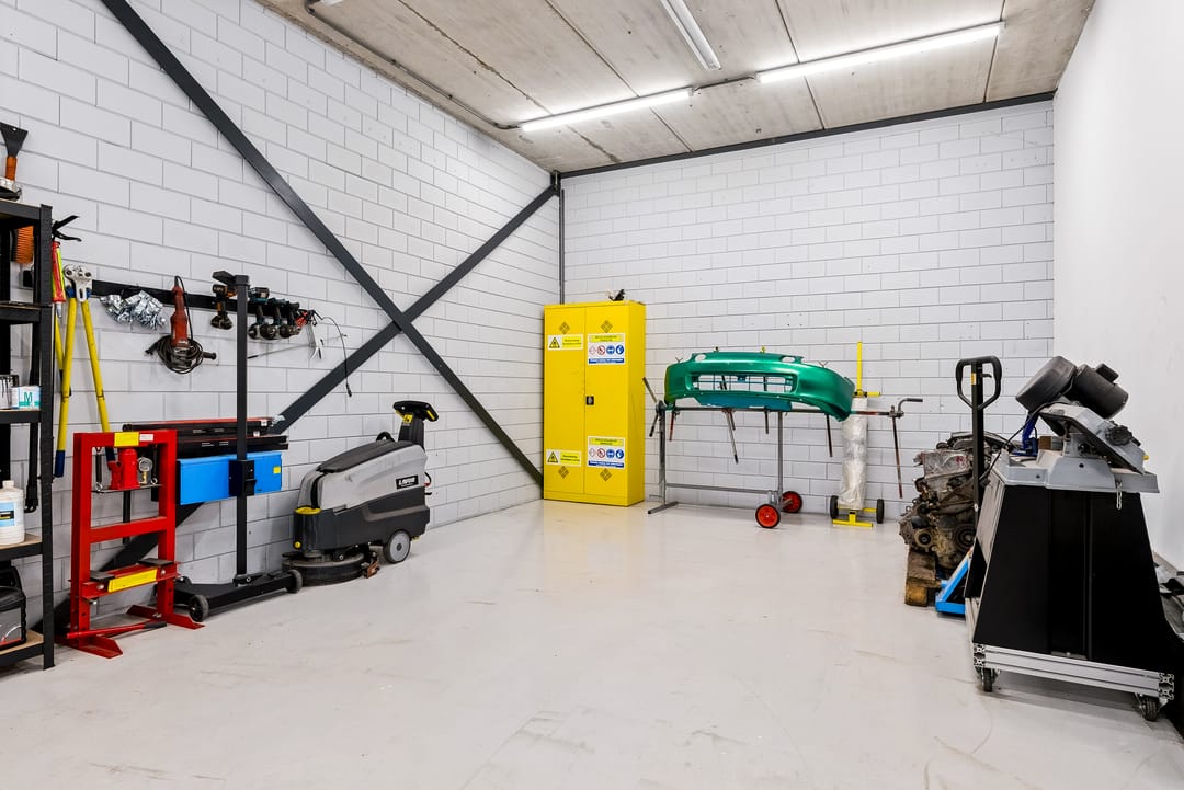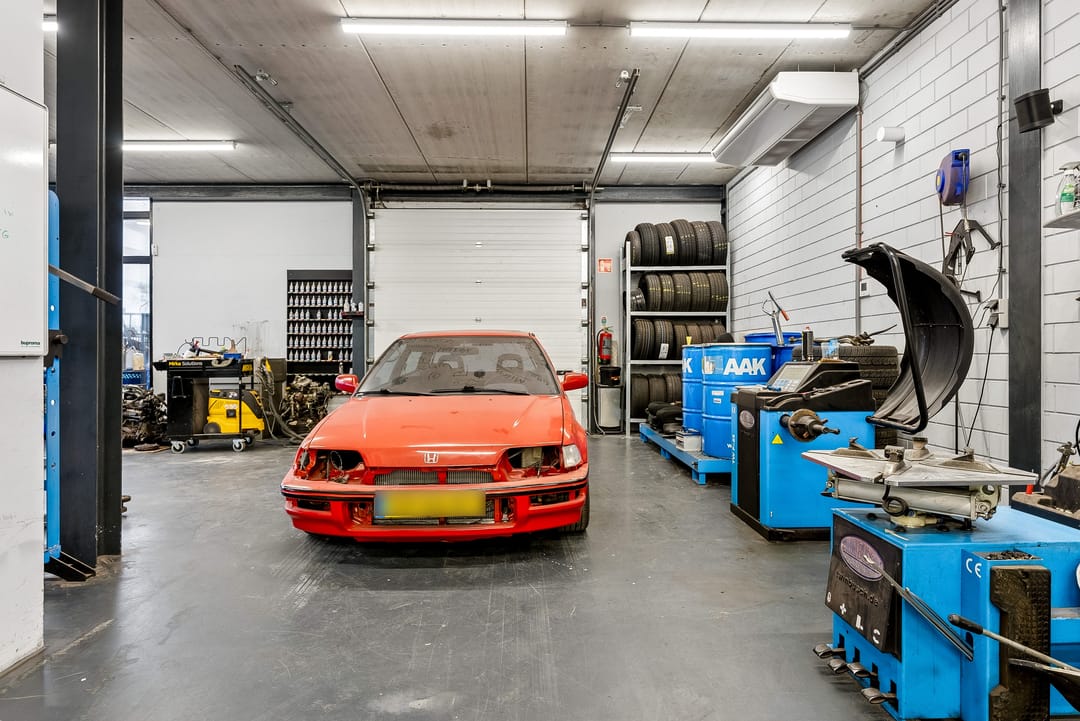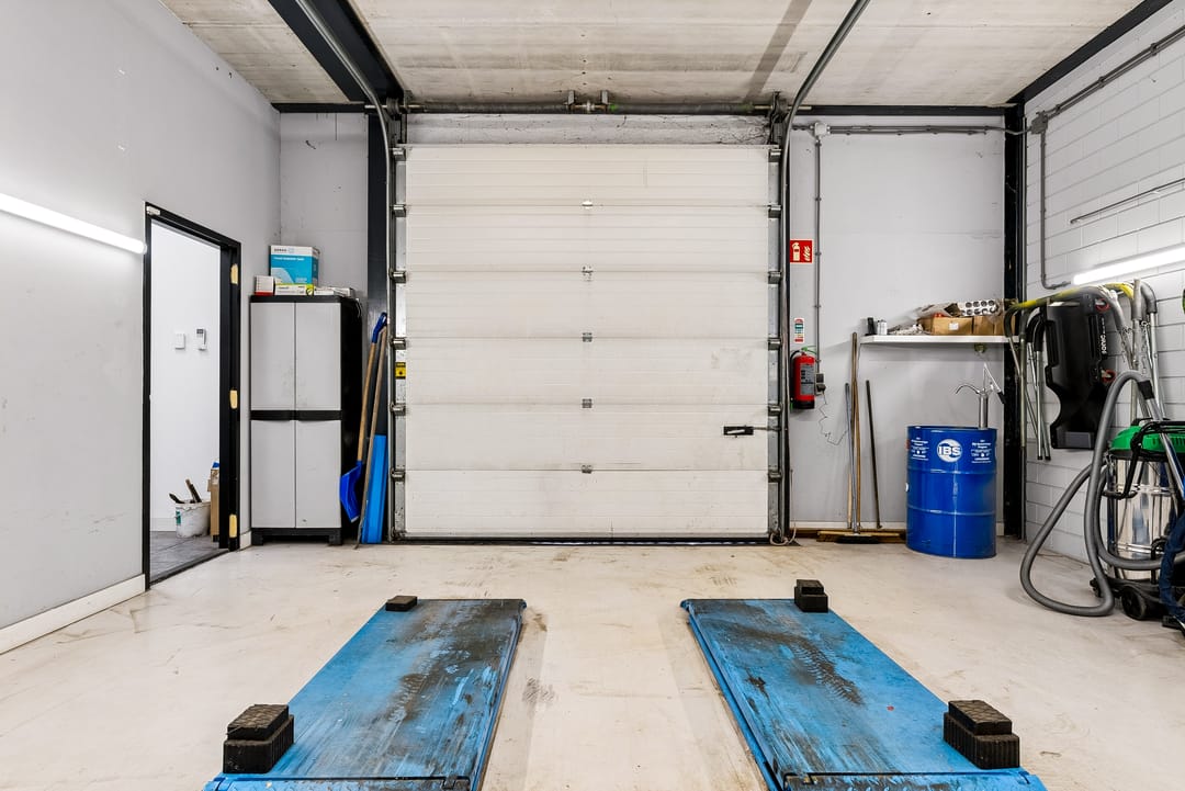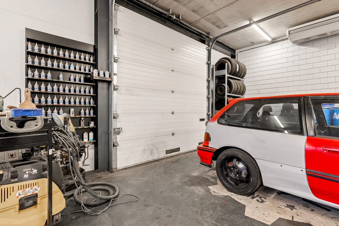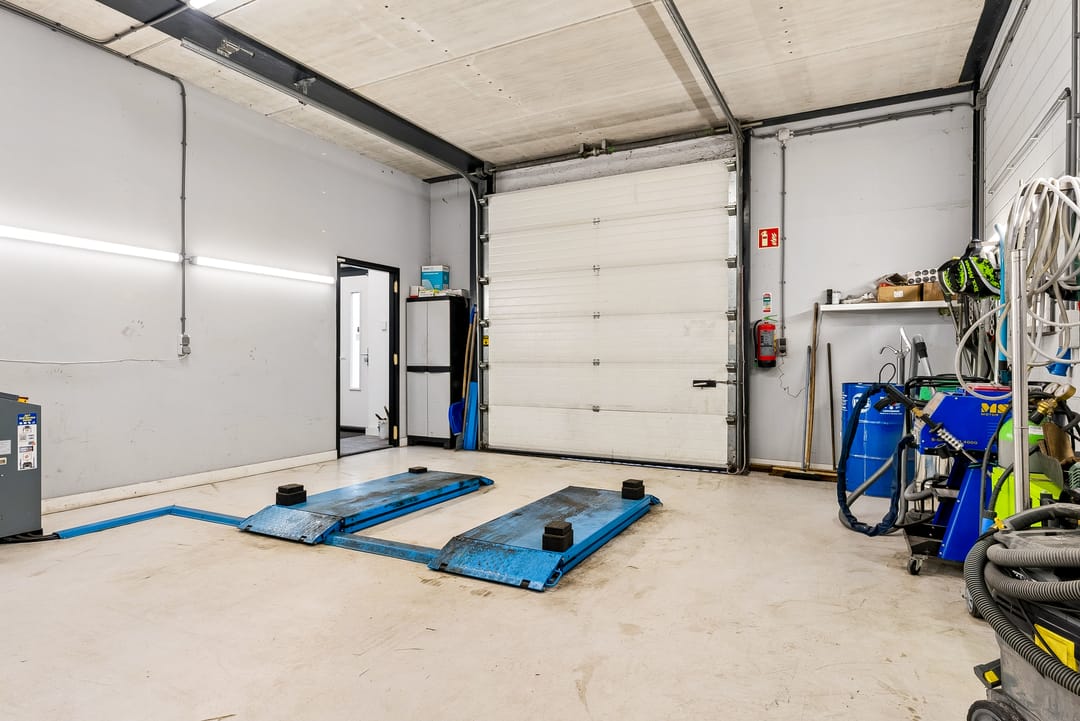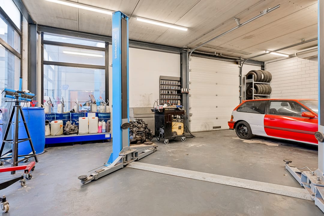 - Overheaddeuren, krachtstroom, betonvloer, toilet, pantry, airconditioning en te openen ramen
