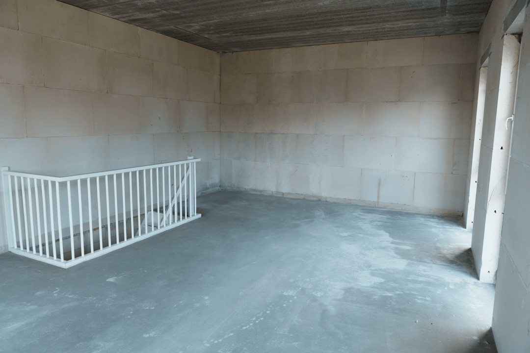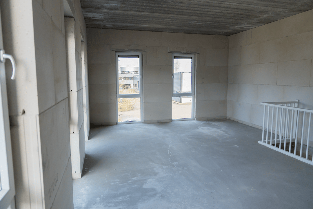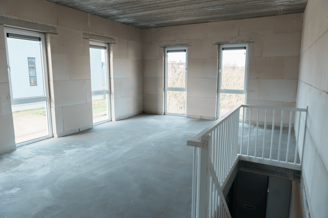 • afgewerkte cementdekvloer op de eerste verdieping