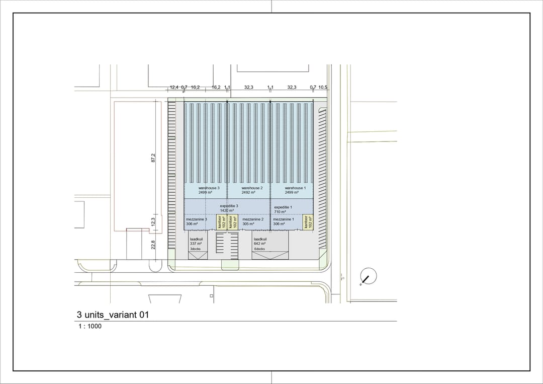 Elke unit beschikt over kantoorruimte, drie overheaddeuren, drie loading docks, vloerbelasting van 3.500-5.000 kg/m2 en een vrije hoogte van circa 12,2 meter.