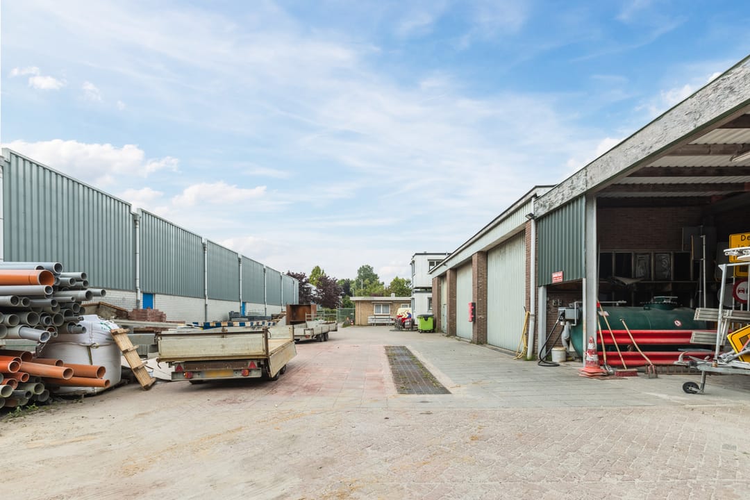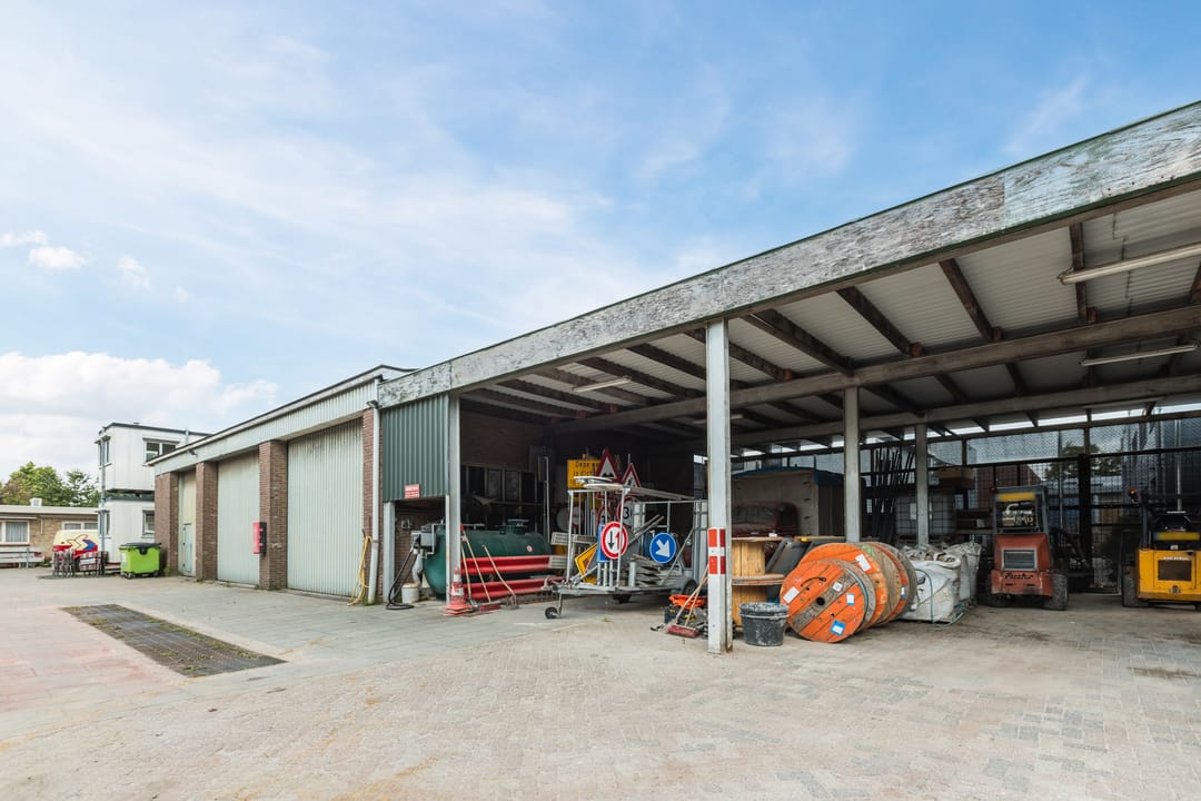 Bedrijfsruimte bestaande uit een opslag-/stallingsruimte, extra bergruimte en een grote overdekte open loods.