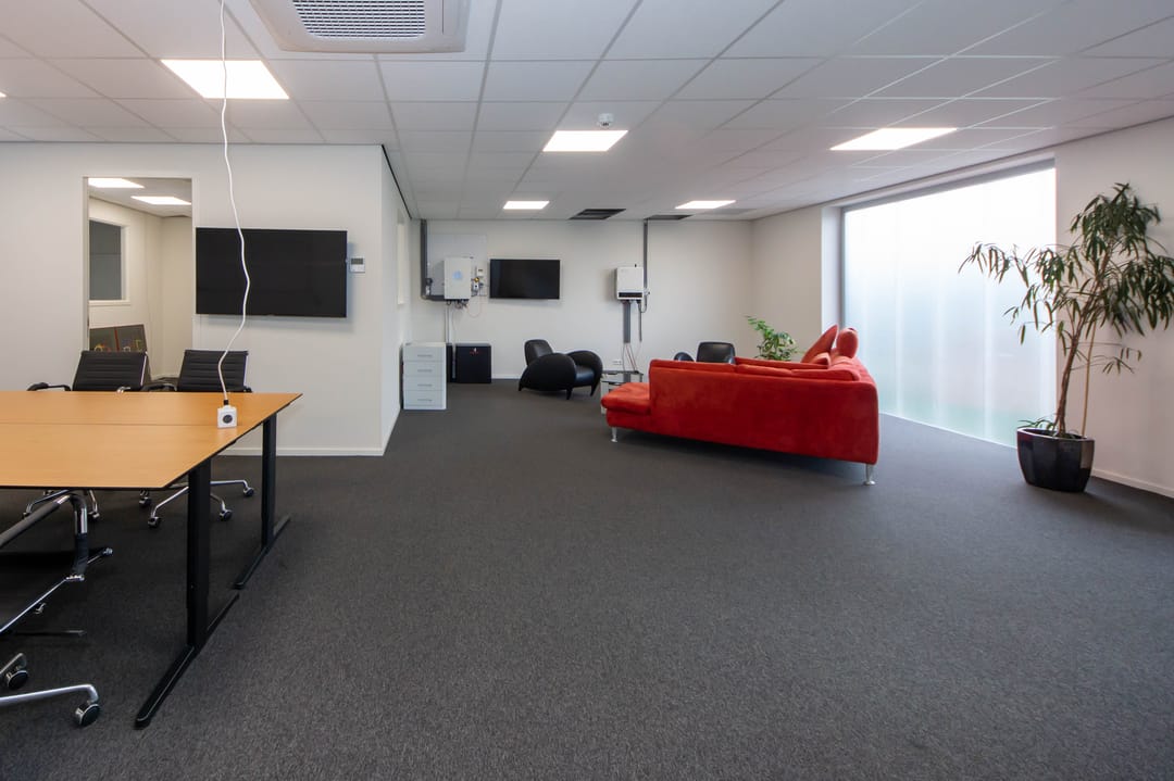 - Airconditioning, overheaddeuren, krachtstroom, betonvloer, heater, toilet, pantry en te openen ramen