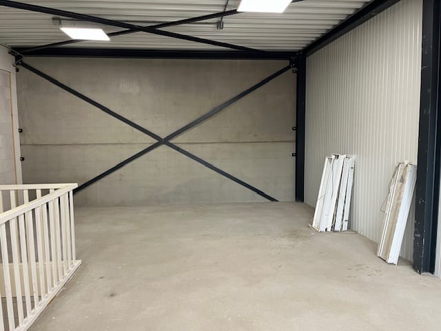 - Overheaddeuren, krachtstroom, betonvloer en toilet