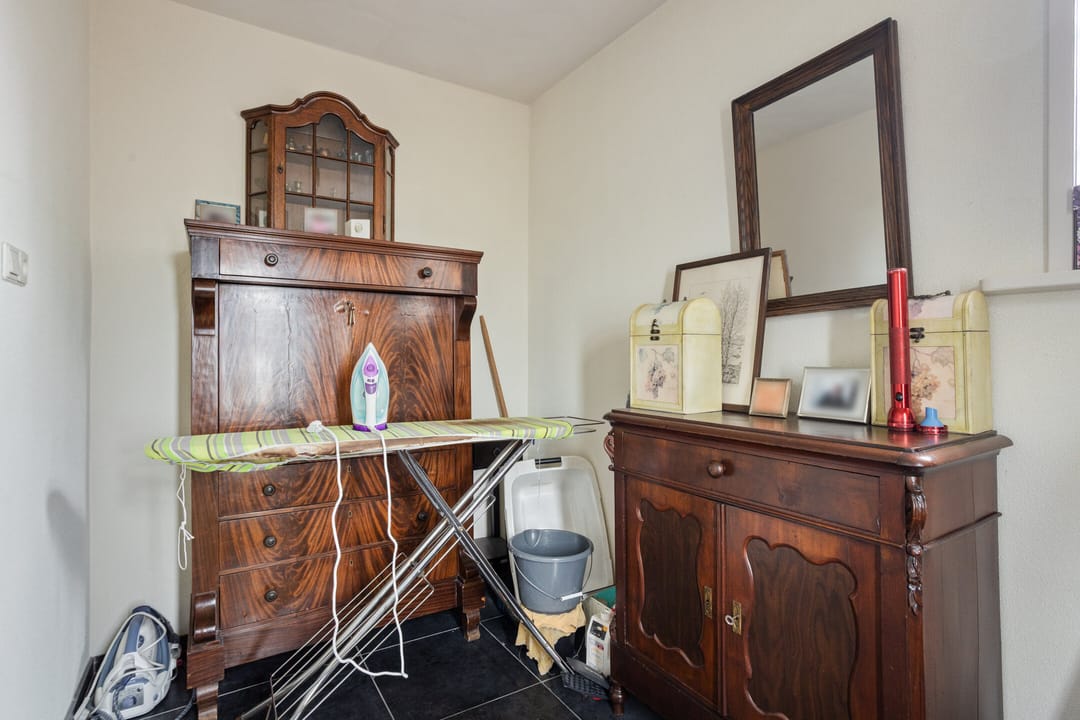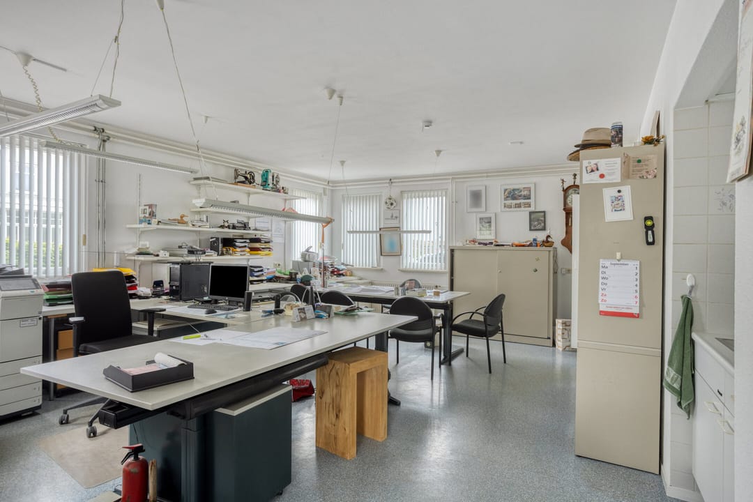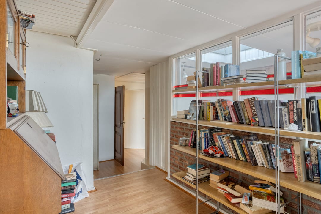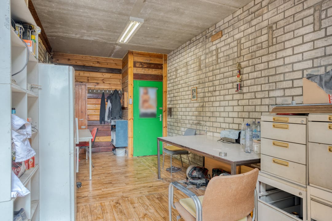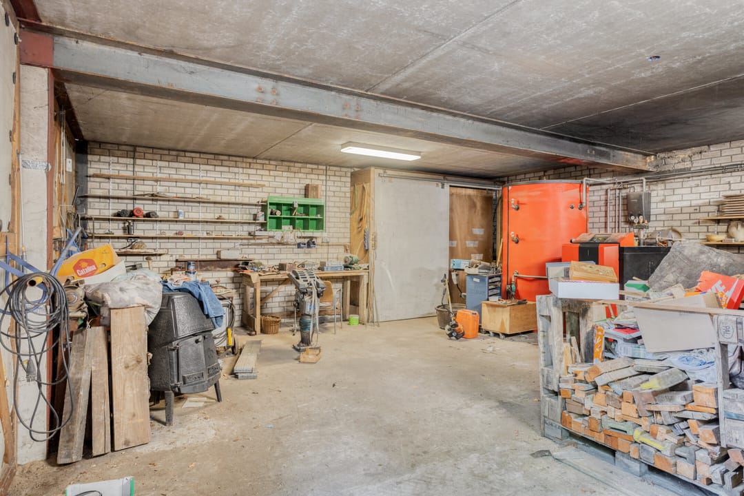 Op de begane grond is daarnaast een authentiek kantoor aanwezig met houten vloer en vaste kastenwand, evenals een tweede kantoorruimte van circa 35 m², uitgerust met een alarminstallatie. Onder de woning bevindt zich een ruime kelder van circa 41,5 m², bereikbaar via een vaste trap en voorzien van een hoge kelderverdieping.