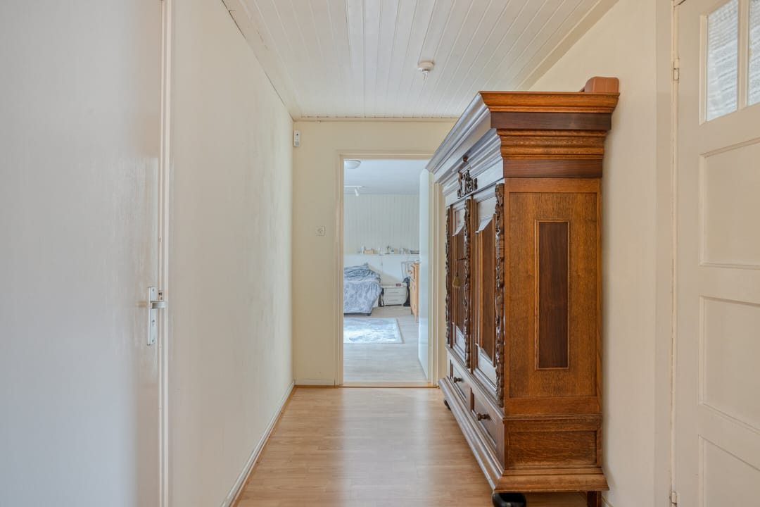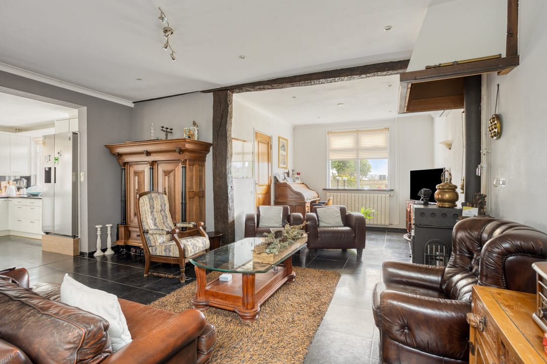 Binnenin treft u een moderne afwerking met een zwarte tegelvloer, glad stucwerk, radiatoren en een gasaansluiting. Dankzij de aanwezigheid van zonnepanelen aan de achterzijde van het dak en twee airco-units is de woning bovendien energiezuinig en comfortabel. Een sfeervolle open haard en houten balkpartijen dragen bij aan de warme uitstraling.