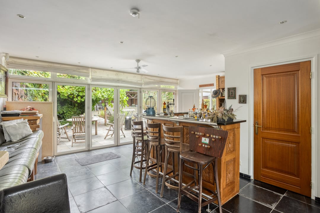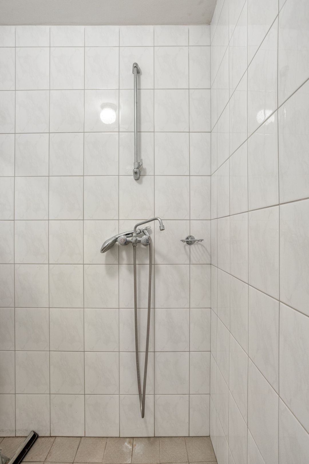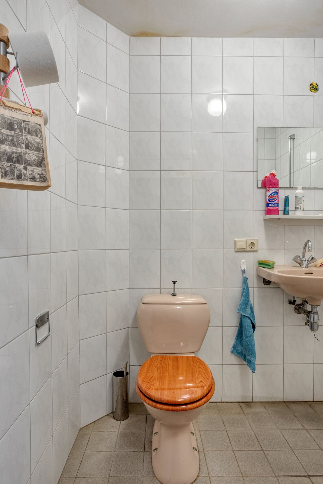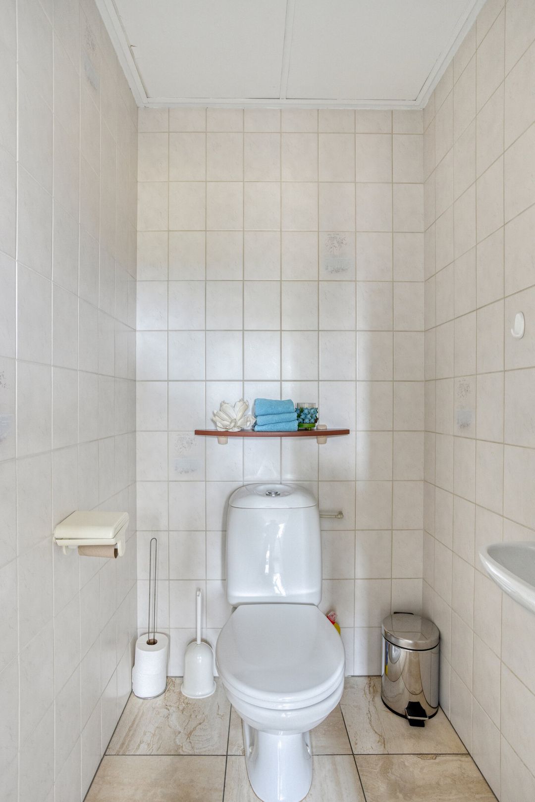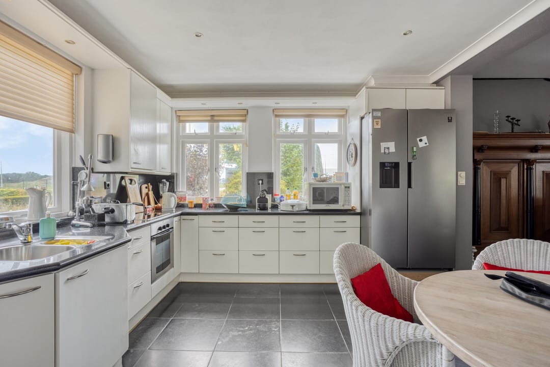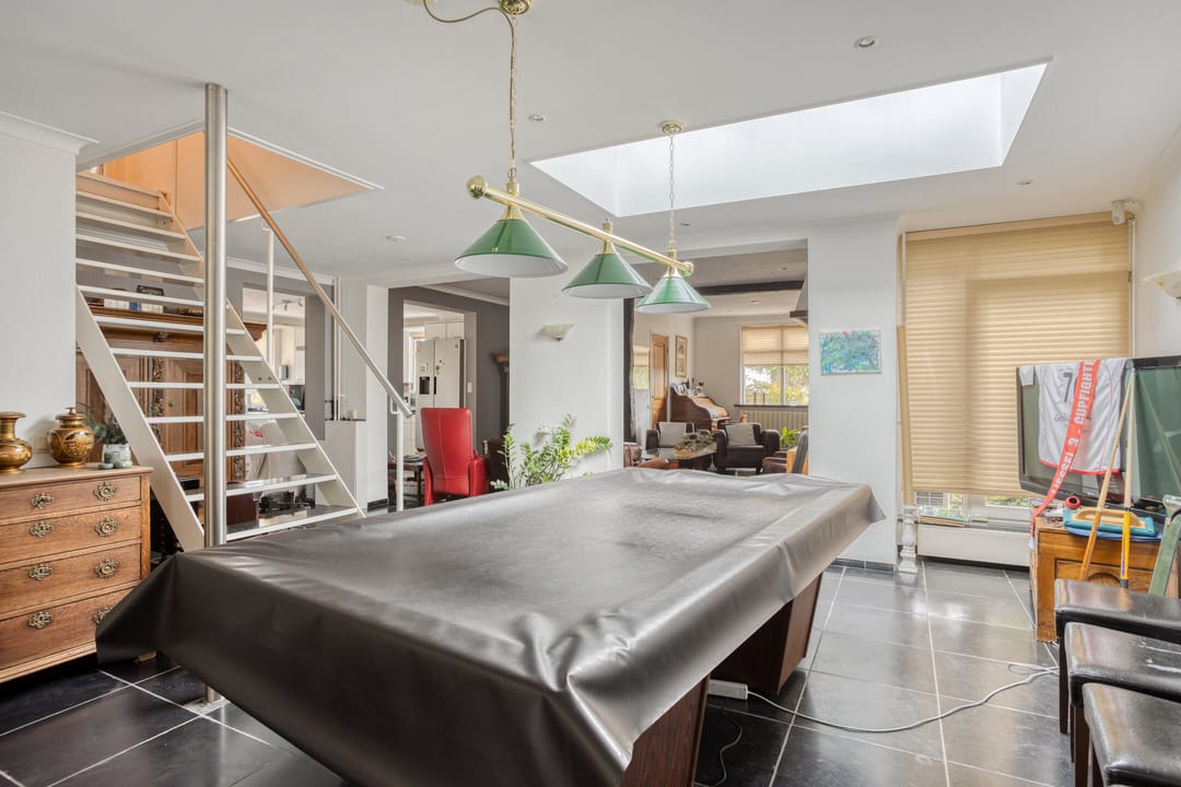 De ruime open leefkeuken in L-vorm is voorzien van inbouwarmaturen en sierlijsten in het plafond. Aansluitend bevindt zich een verlengde woonkamer met lichtstraat, plafondventilator en een royale glazen pui richting de tuin. De betegelde toiletruimte, tot aan het plafond afgewerkt, beschikt tevens over een douche.