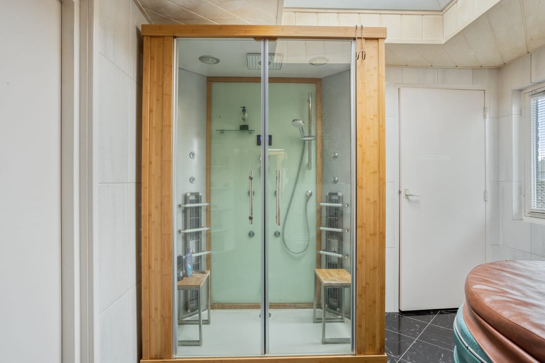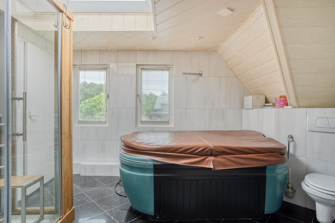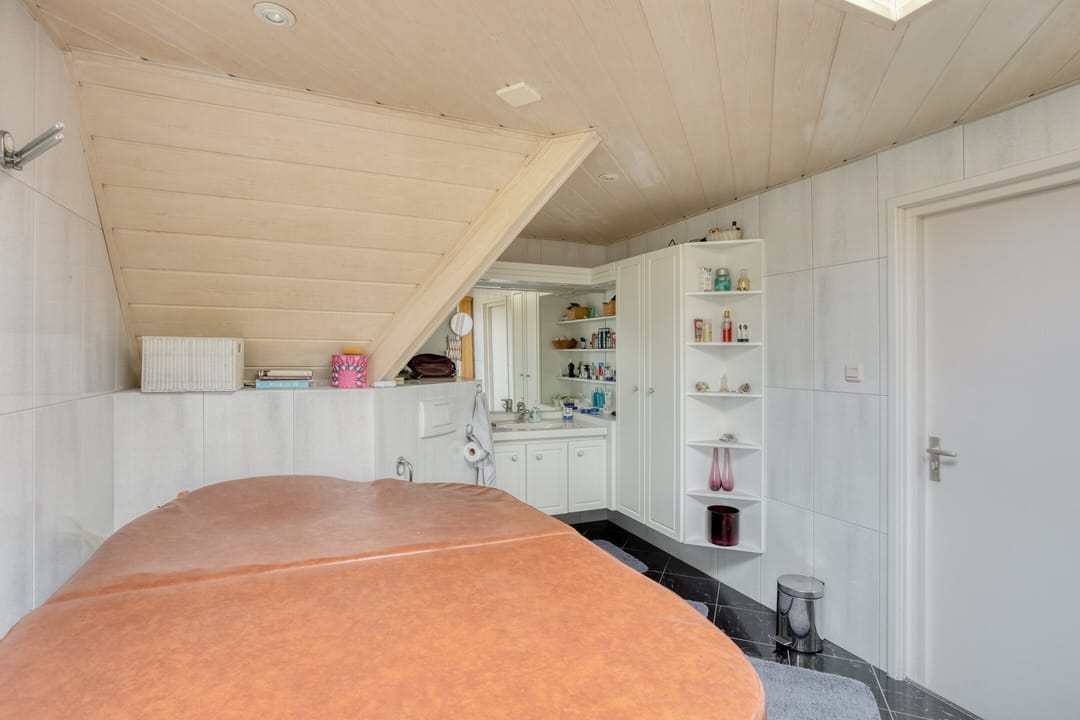 De eerste verdieping telt vier ruime slaapkamers, waarvan één met een dakkapel. Twee kamers beschikken over een eigen wastafel. De vloeren zijn afgewerkt met laminaat. De badkamer is uitgerust met een lichtstraat, jacuzzi, ruime regendouche, toilet, inbouwarmaturen en een dakraam.
