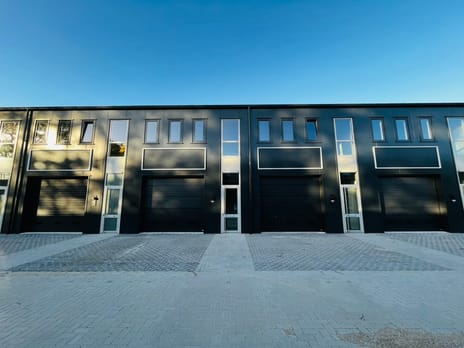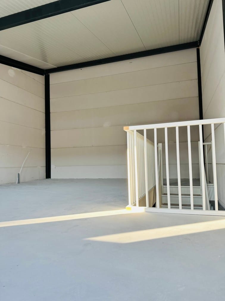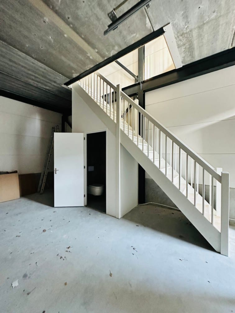 - Overheaddeuren, betonvloer, toilet, pantry en te openen ramen