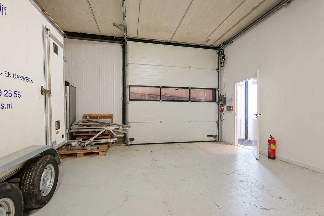 - Overheaddeuren, krachtstroom, betonvloer, toilet, pantry, airconditioning en te openen ramen