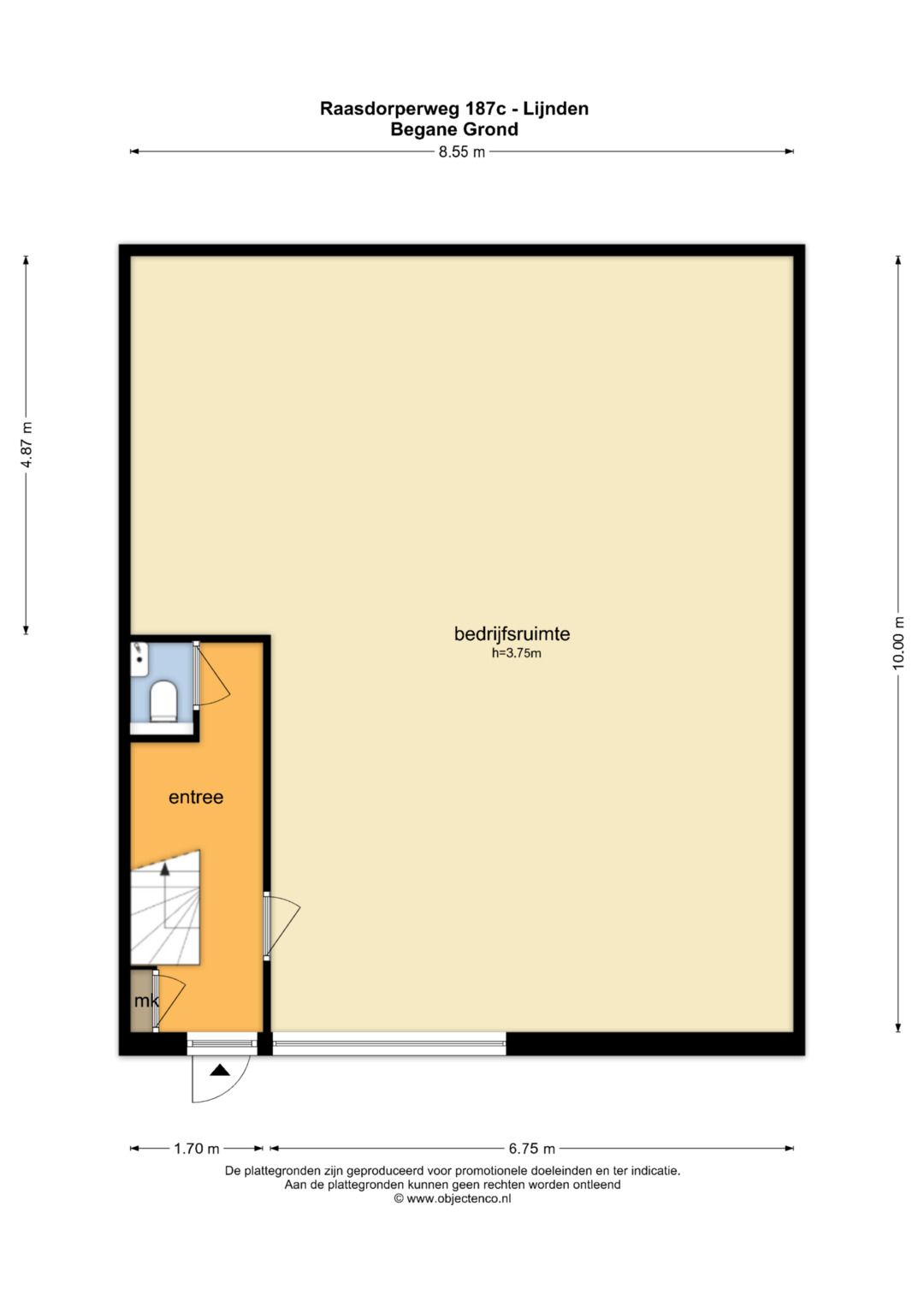 - Plafondhoogte is ca. 3,75m hoog met een rijhoogte van 3,5m