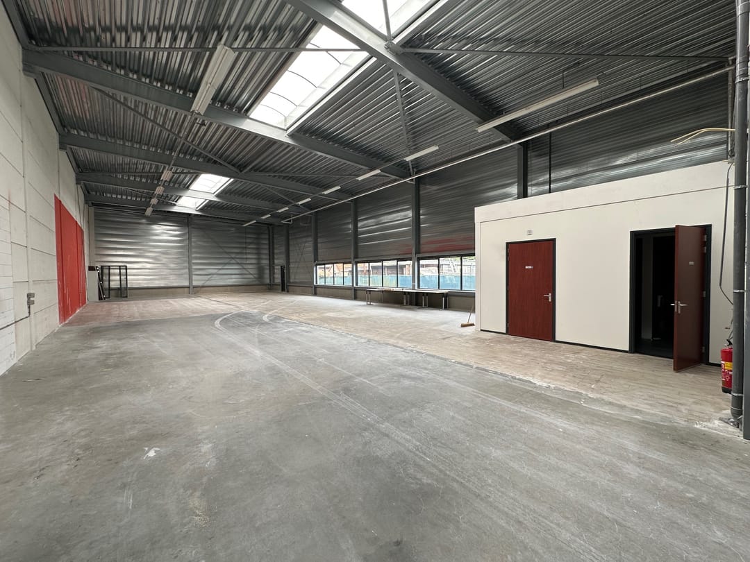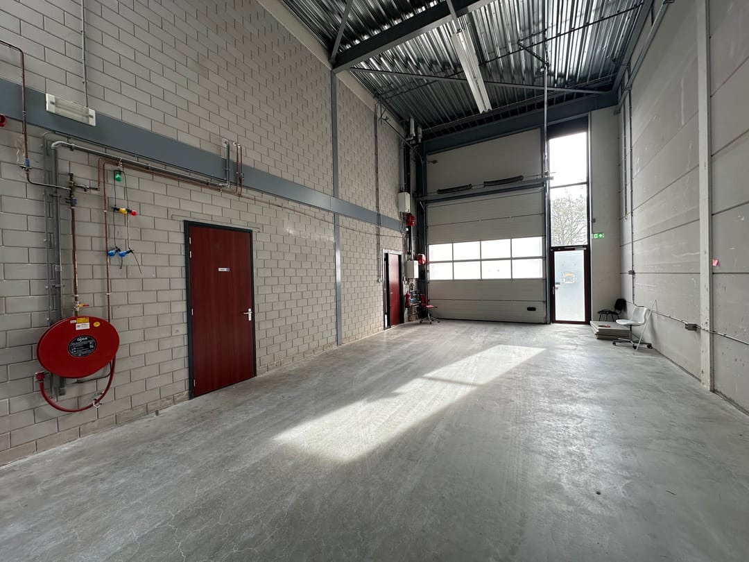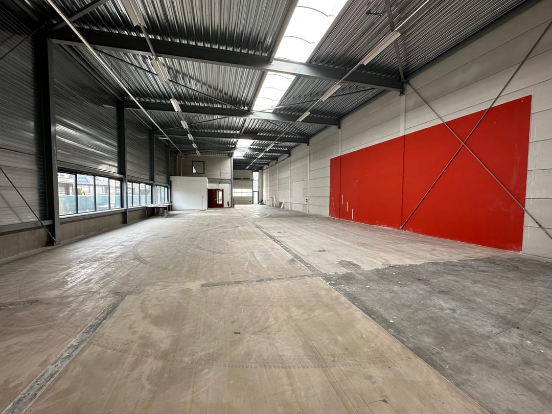 - Lichtstraten, overheaddeuren, krachtstroom, betonvloer, toilet, pantry, airconditioning, inbouwarmaturen en te openen ramen