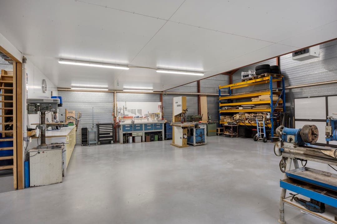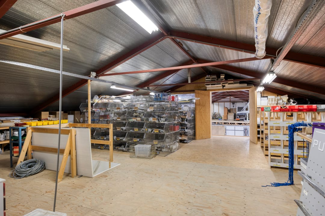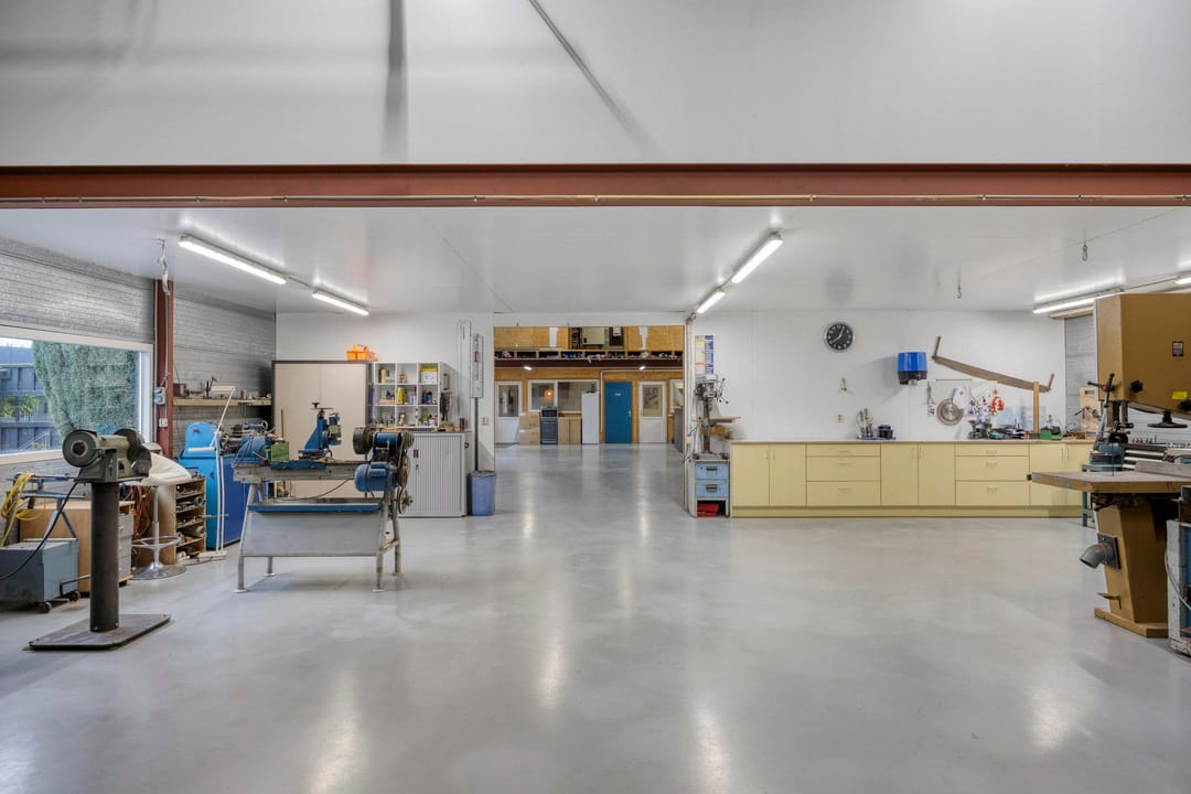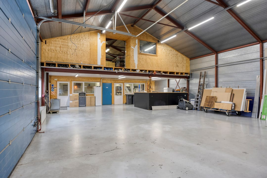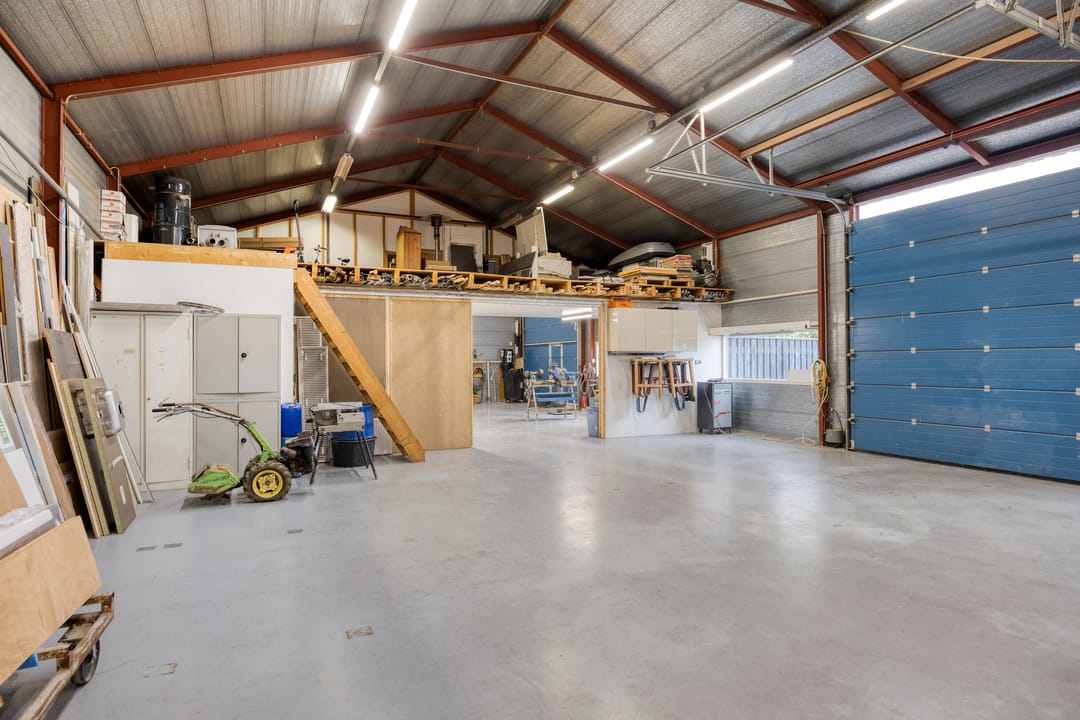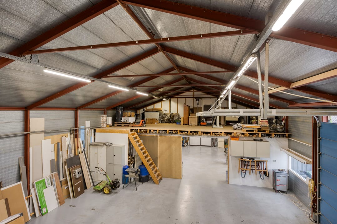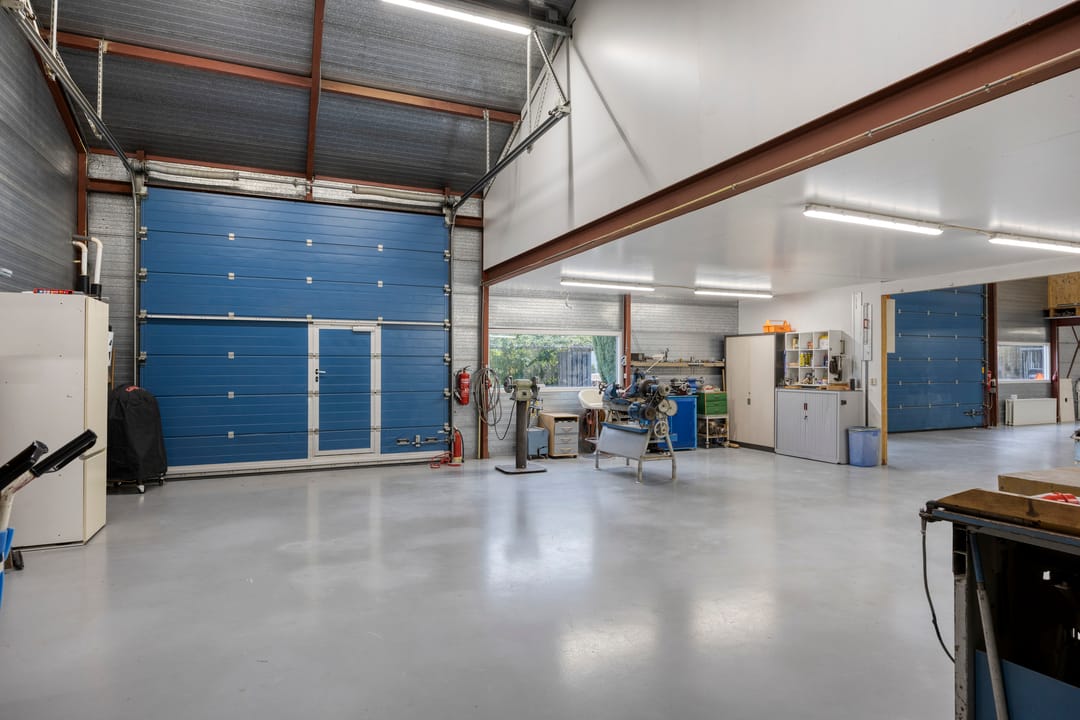- Overheaddeuren, krachtstroom, betonvloer, toilet, pantry, inbouwarmaturen en te openen ramen