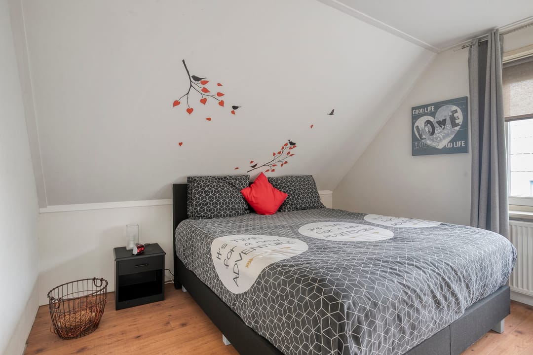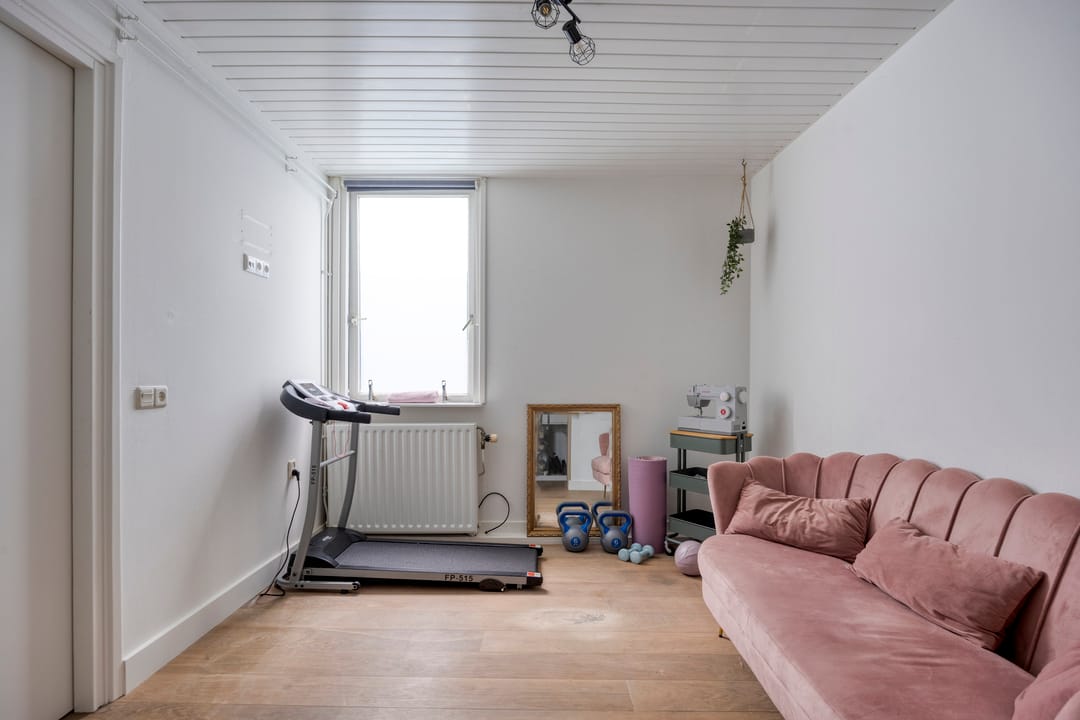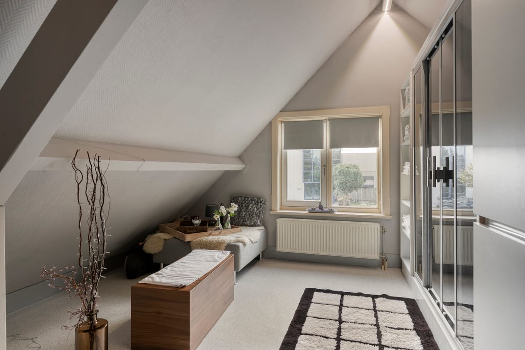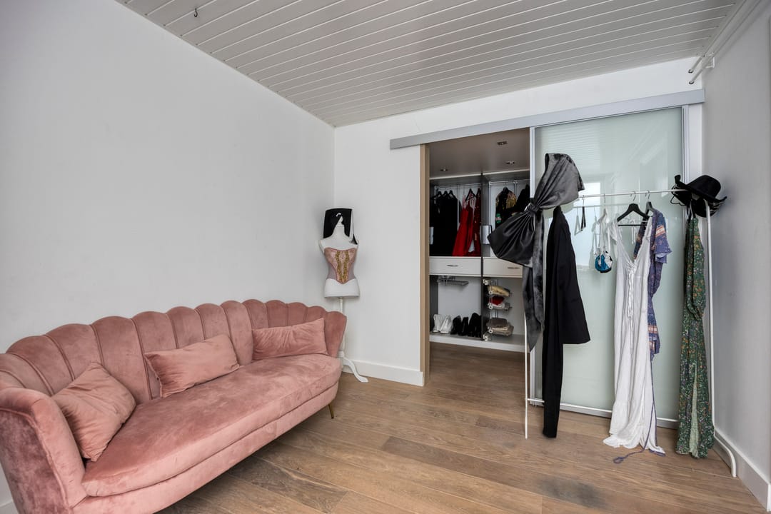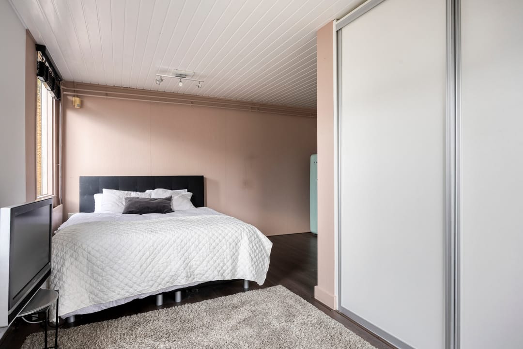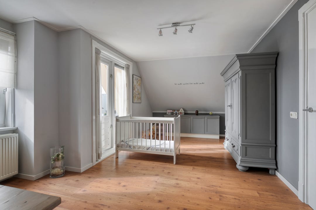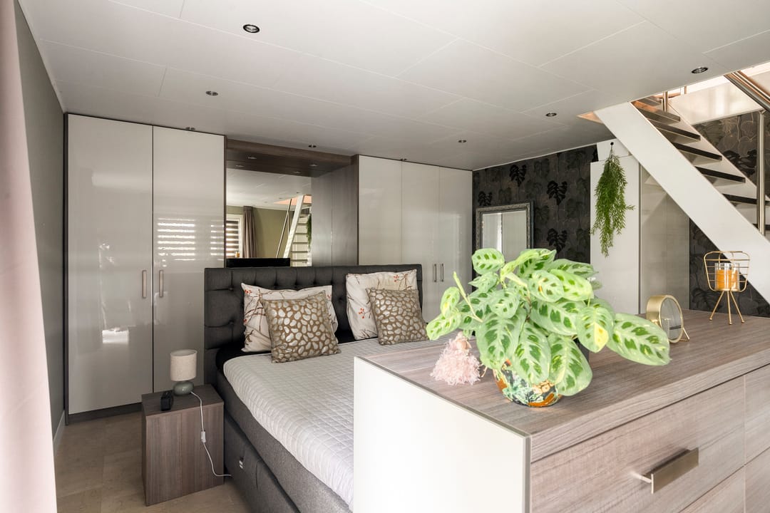 - Op de begane grond bevindt zich tevens een extra (slaap)kamer. De ‘master’ is voorzien van een vaste kastenwand met wastafelmeubel. Momenteel is deze ruimte in gebruik als slaapkamer, maar is natuurlijk ook eenvoudig te benutten als speelkamer, kantoor, etc.