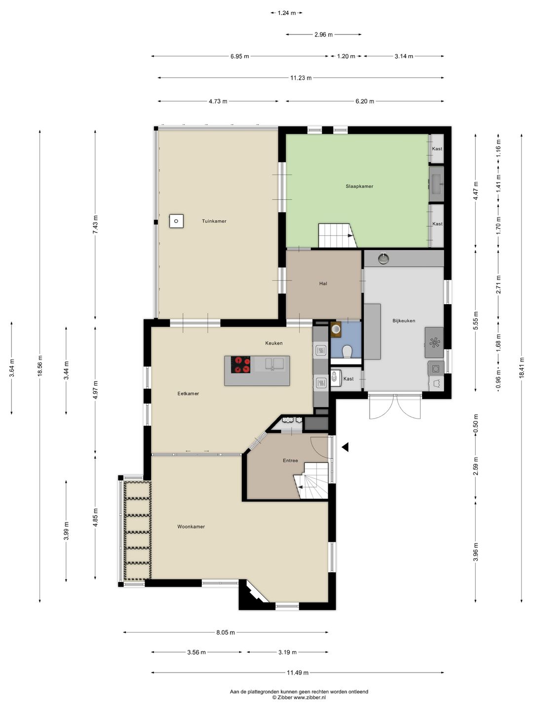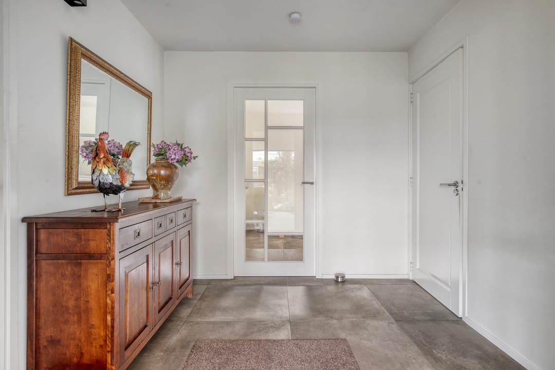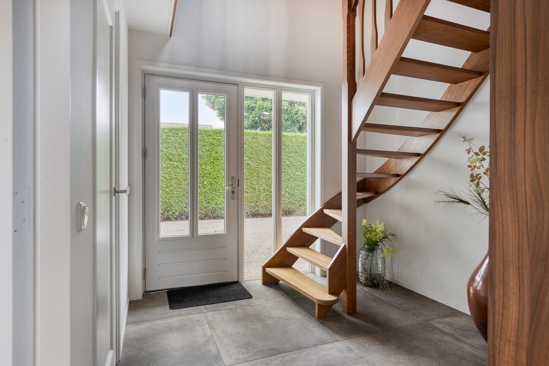 - U komt binnen via een ruime hal met meterkast en trapopgang. Deze ruimte geeft u toegang tot de leefkeuken en woonkamer.