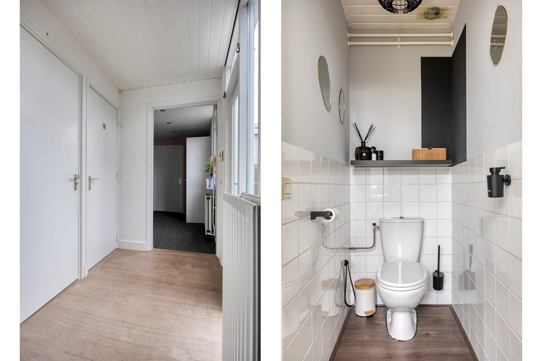 - De ruim bemeten bijkeuken is voorzien van praktische werkbladen, witgoedaansluitingen en technische ruimte. Daarnaast bevind zich hier de recentelijk gerenoveerde toilet.