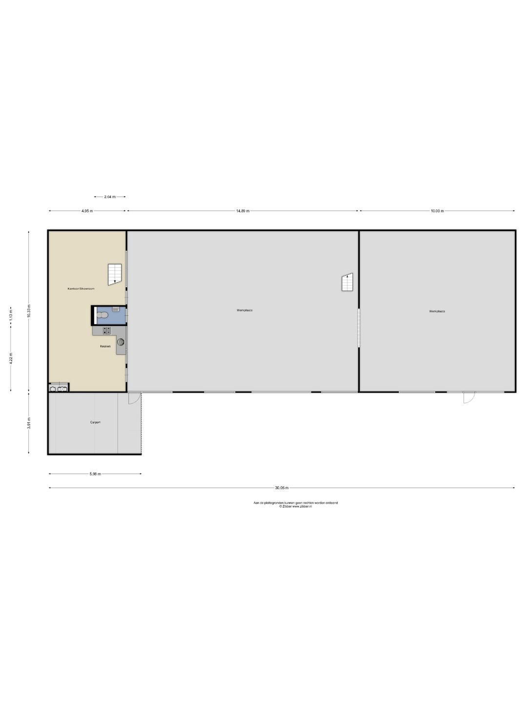 Begane grond: bedrijfsruimte / werkplaats, kantoor-/ kantineruimte en toilet.
