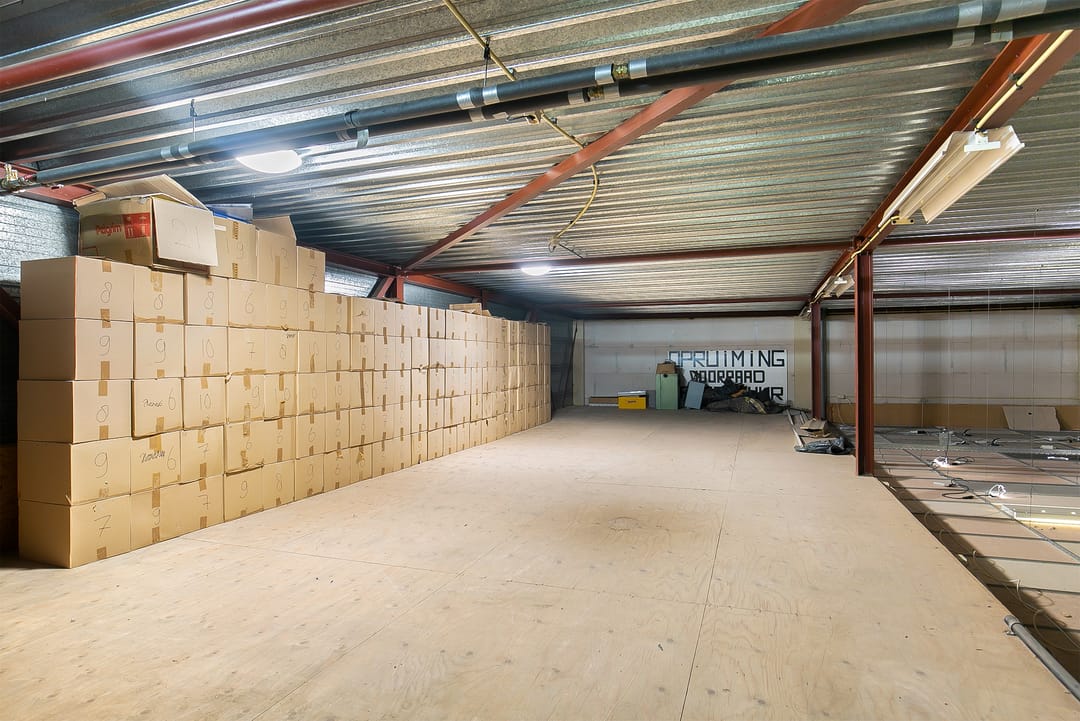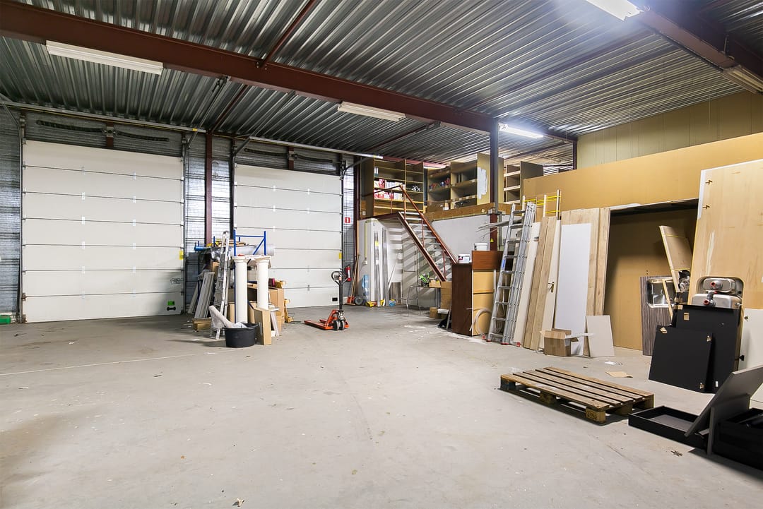 - Overheaddeuren, betonvloer, heater, toilet en pantry