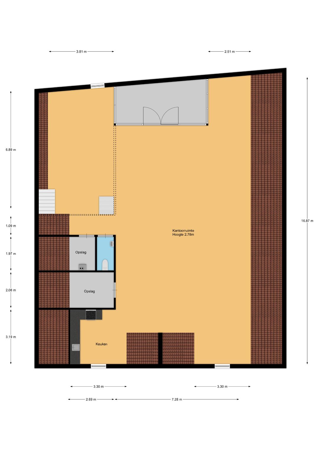 Verdieping: showroom-/kantoorruimte van ca. 253 m² b.v.o.