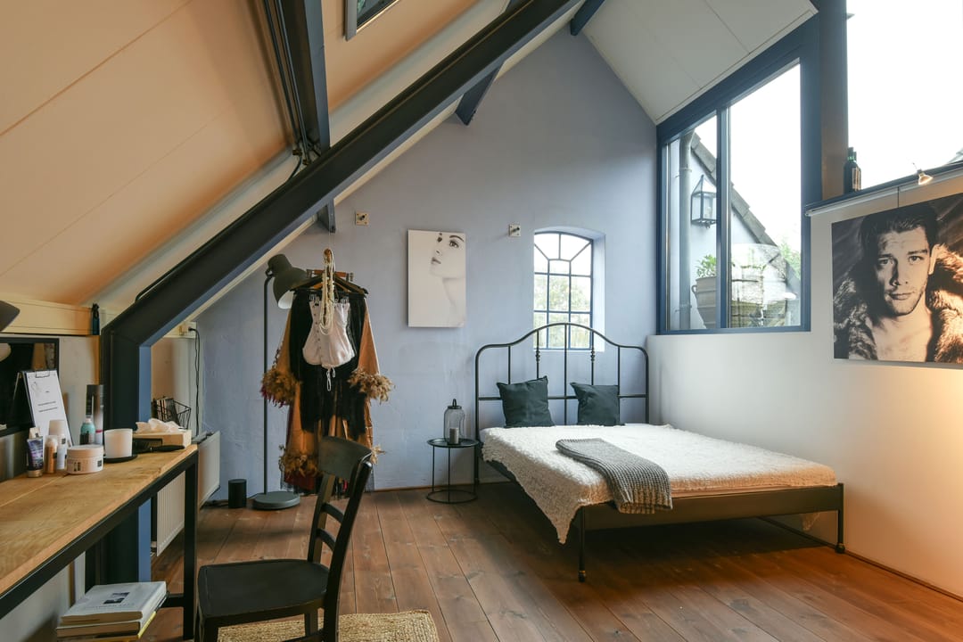 - verdieping met houten vloer, openslaande deuren naar dakterras met fraai uitzicht over de weilanden;