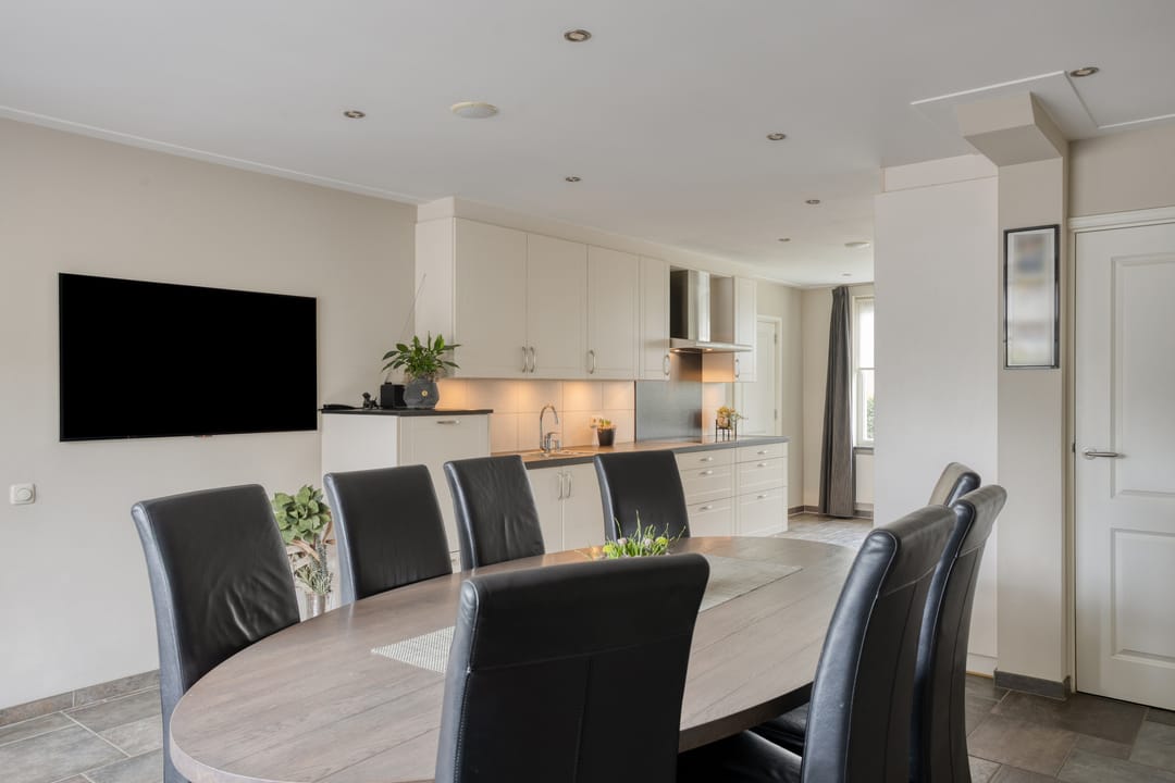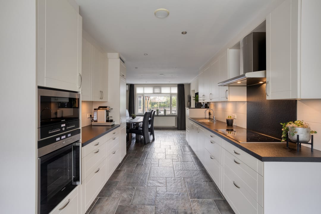 De woonkeuken is geplaatst in een dubbele rechte wandopstelling en is voorzien van een granieten aanrechtblad. De inbouwapparatuur bestaat uit onder andere een inductie kookplaat met afzuiging, magnetron met gril en bakoven, ruime koelkast en vaatwasser op hoogte. Tevens treft u hier een praktische provisieruimte aan en de trapopgang naar de eerste verdieping. Daarnaast bevindt zich in de keuken een airco, welke zorgt voor een behaaglijk klimaat in de zomer en winter.