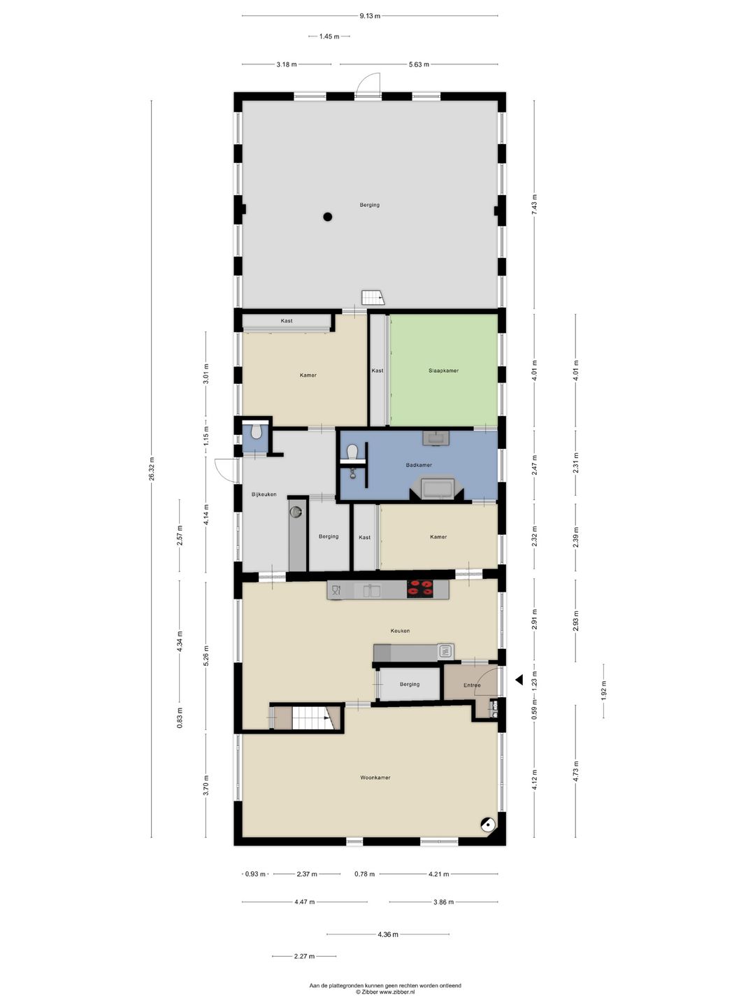 De bergruimte (oppervlakte: 5,35 x 7,18 = 38 m² (binnenwerks) is gebouw in 2025 en is opgetrokken uit steen. Het dak is met stalen profielplaten gedekt. In de bergruimte is een betonvloer aanwezig en de bergruimte is voorzien van muur- en dakisolatie.