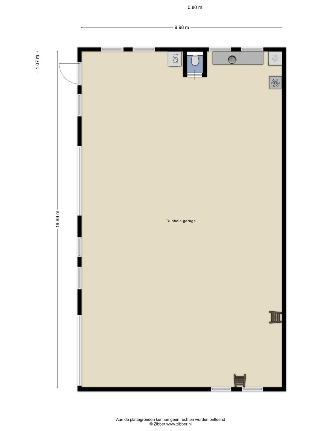 Naast de woning zijn er op het perceel nog diverse bijgebouwen aanwezig. Als eerste noemen we de garage (oppervlakte: 9,98 x 16,69 = 166 m² binnenwerks). Deze is gebouwd in 2010 en is opgetrokken uit baksteen. Het dak is met sandwichpanelen gedekt. De binnenmuren zijn van kalkzandsteen en de vloer betreft een gevlinderde betonvloer. Een gedeelte van de garage is voorzien van een verdiepingsvloer. Via twee overheaddeuren is de garage te betreden en in de garage zorgt een heater voor verwarming. Daarnaast zijn de vloerverwamingsleidingen aanwezig. Deze garage is aangesloten op elektra (krachtstroom), water en riolering. In de garage treft u een toiletruimte en een aanrechtblok aan met een close-in boiler.