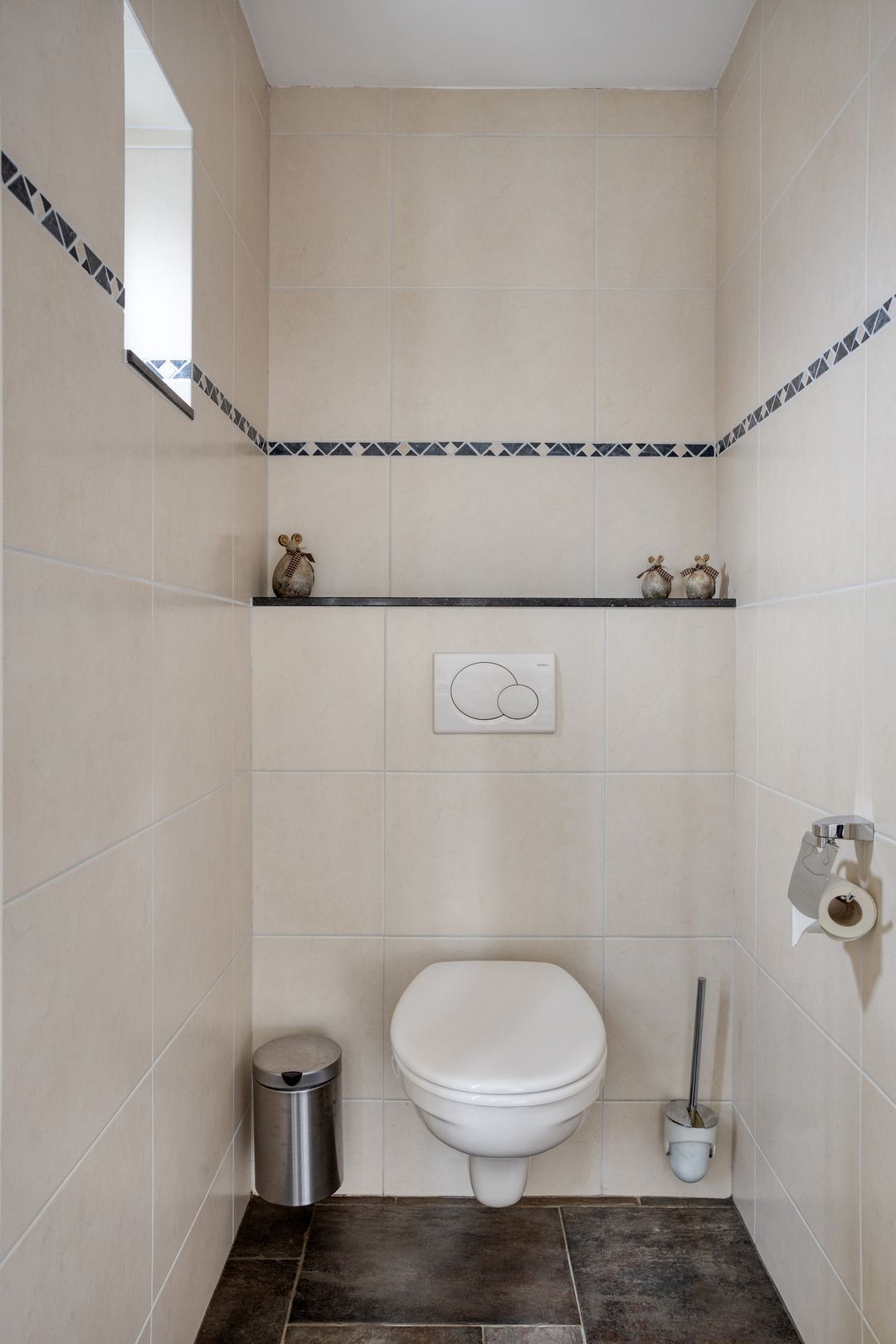 De bijkeuken is zowel vanuit buiten als vanuit de woonkeuken te bereiken. Hier heeft u de beschikking over een praktisch keukenblok, een ruime inloopkast, maar ook hier bevindt zich de garderobe en de separate toiletruimte.