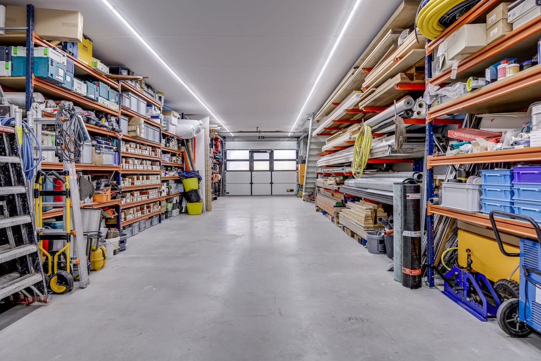 - Mechanische ventilatie, lichtstraten, overheaddeuren, betonvloer, toilet en pantry