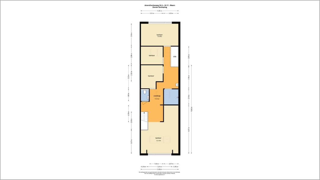 De totale vloeroppervlakte bedraagt 197 m² verhuurbare vloeroppervlakte, gelijkwaardig verdeeld over de begane grond en eerste verdieping.