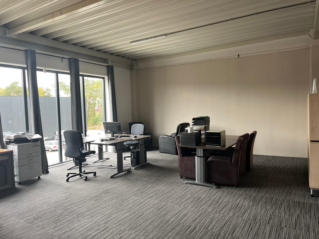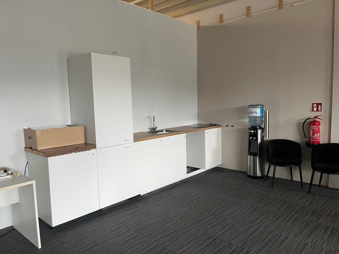 De eerste verdieping biedt een moderne kantoorruimte met veel daglicht dankzij de grote raampartijen. Hier is tevens een pantry aanwezig, ideaal voor de dagelijkse gebruiksvoorzieningen.