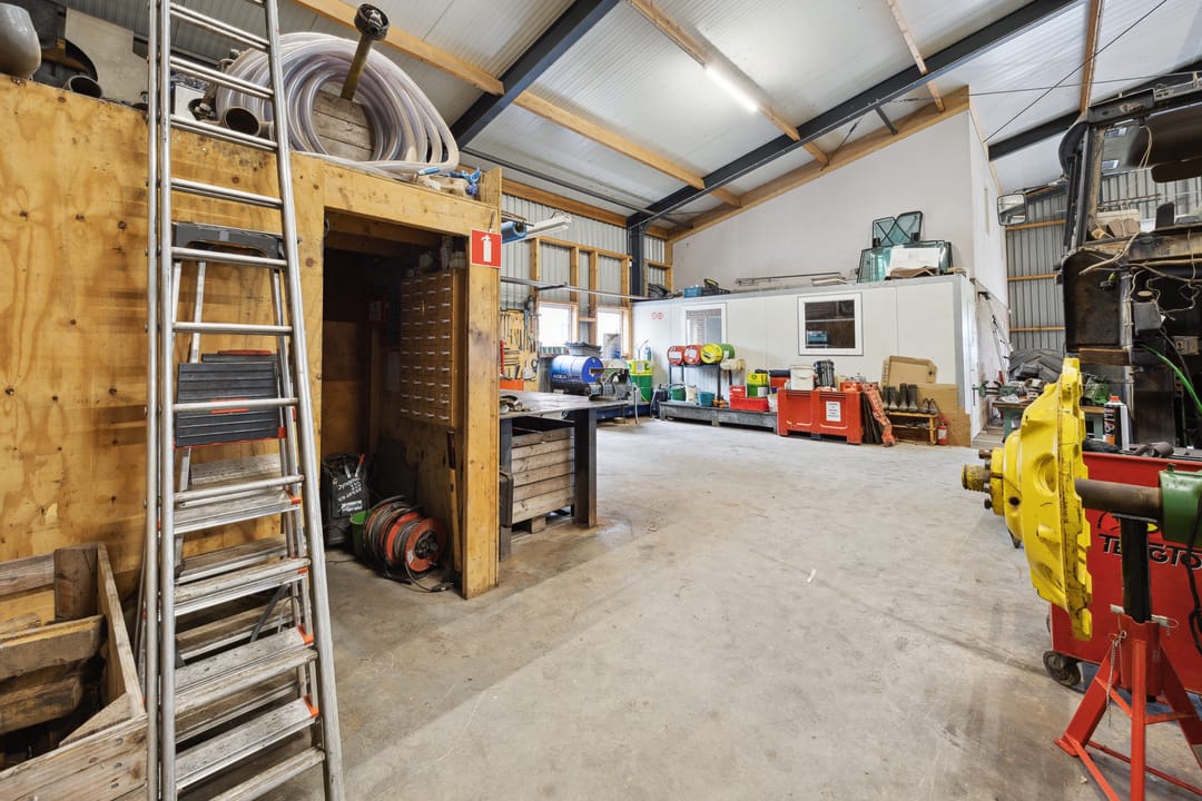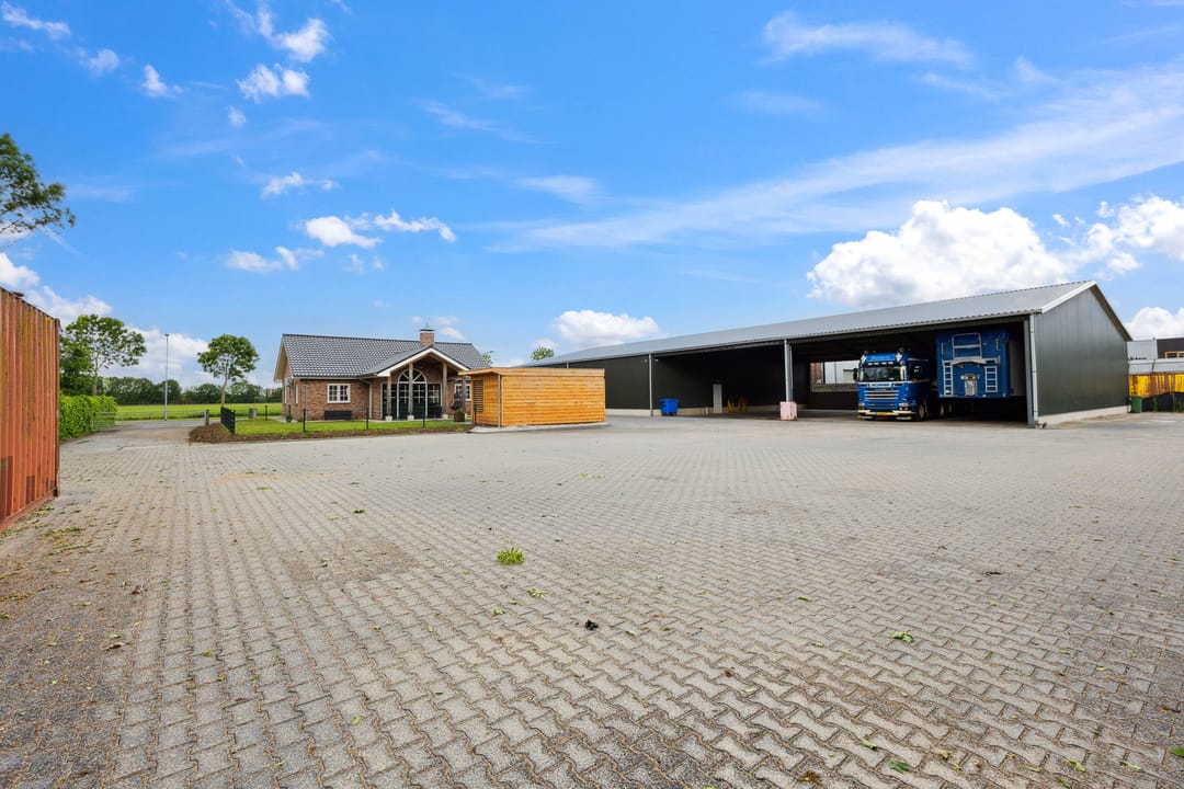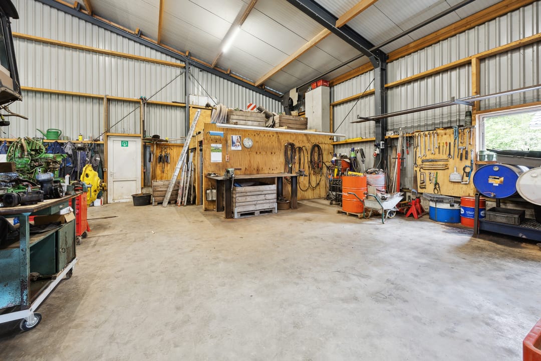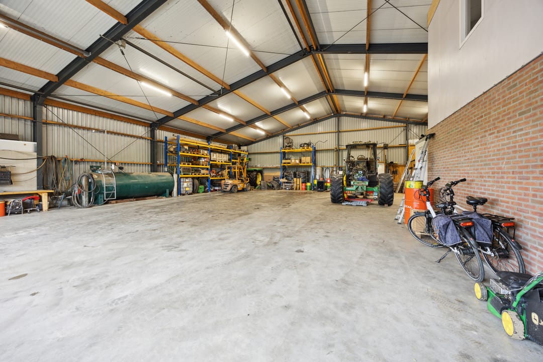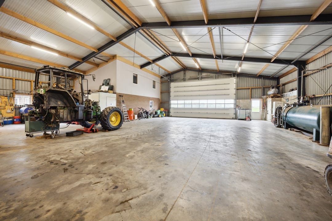 Grenzend aan de woning ligt een ruime, multifunctionele bedrijfsloods – ideaal voor ondernemers in bouw, logistiek, techniek of opslag. De loods biedt 400 m² open ruimte, volledig verhard en voorzien van een royale doorrijhoogte en afspuitplaats voor vrachtwagens (eenvoudig dicht te maken indien gewenst).