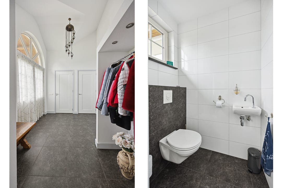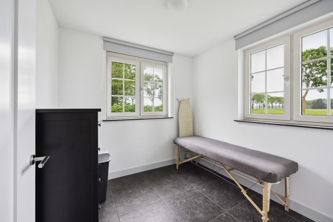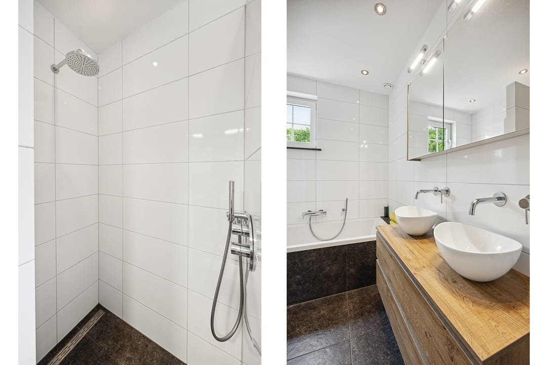Op de begane grond vind je een royale slaapkamer en luxe badkamer met ligbad, inloopdouche en dubbel wastafelmeubel: volledig levensloopbestendig wonen dus. Boven is volop ruimte voor extra kamers of kantoor aan huis.