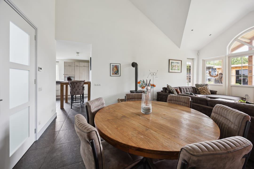 Deze moderne woning (bouwjaar 2017) biedt alles voor een comfortabel leven, met een woonoppervlak van ca. 215 m² en een afwerking die luxe uitstraalt. De ruime woonkamer met sfeervolle houtkachel en vloerverwarming vormt het hart van het huis. De open keuken is een droom voor kookliefhebbers – uitgerust met moderne apparatuur en een vrijstaand gasfornuis.